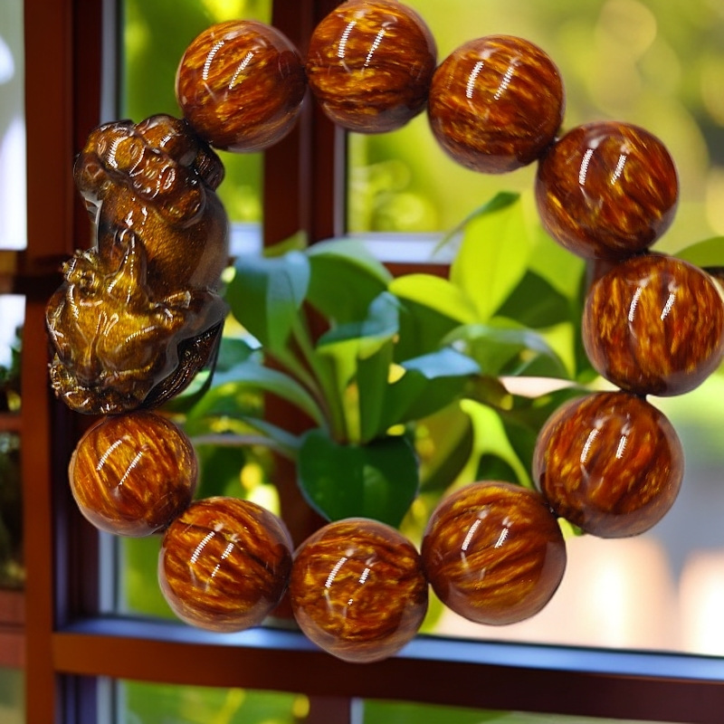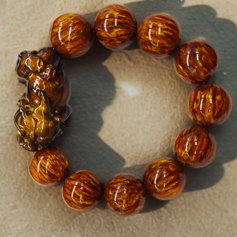正宗东北松明子木手串男长白山北沉香琥珀木全透光血龙木佛珠原木