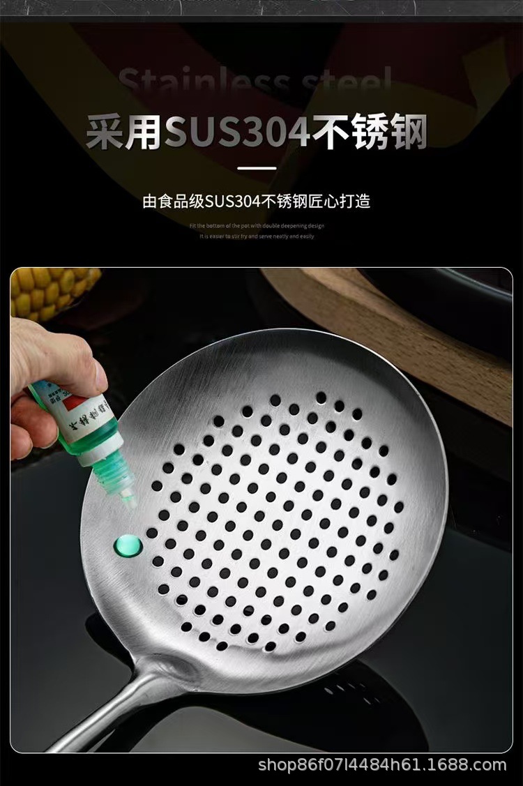 304ステンレス大型食品級フライパン家庭用の網抜き餃子の長い柄のスプーンをすくって水を流します。