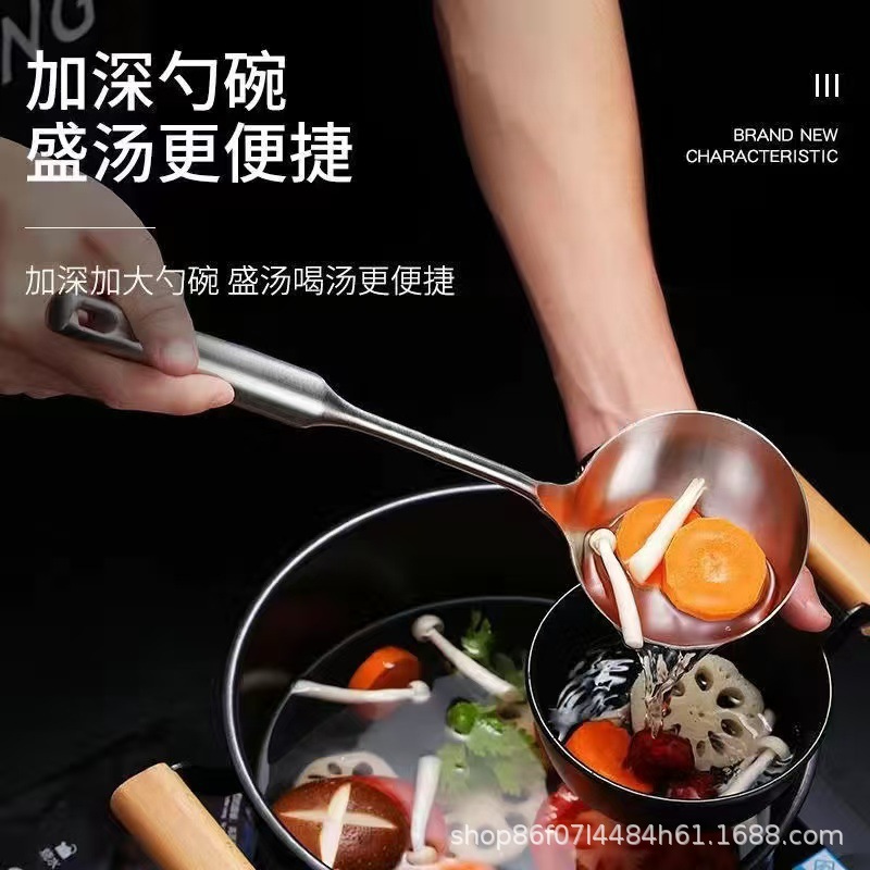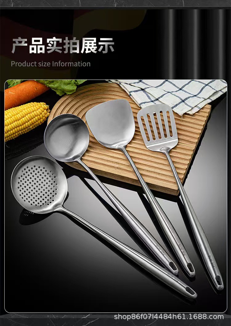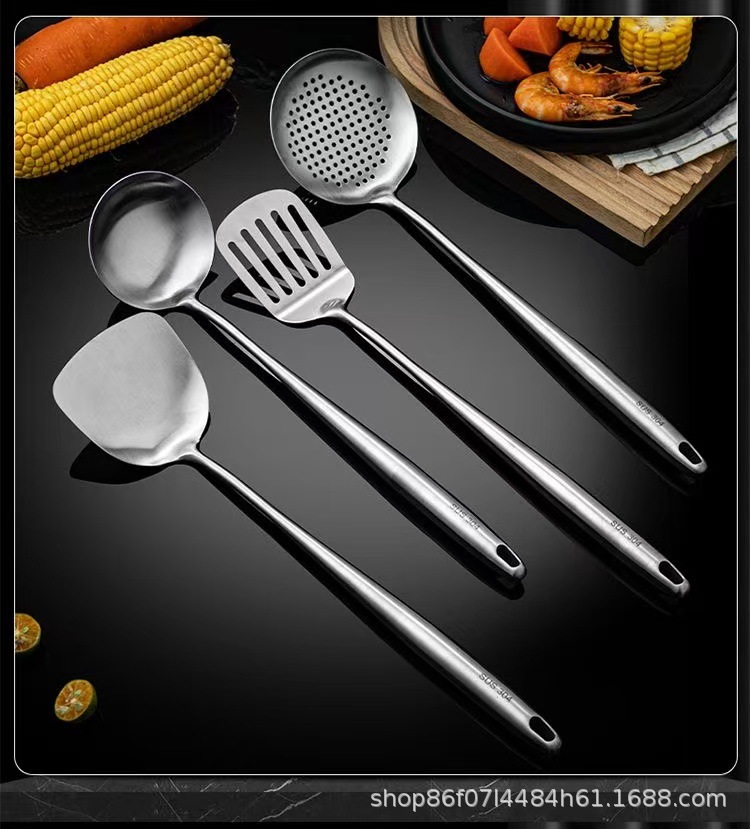 304不锈钢厨房锅铲加厚防烫厨具家用炒菜汤勺铲子炒勺漏勺套装