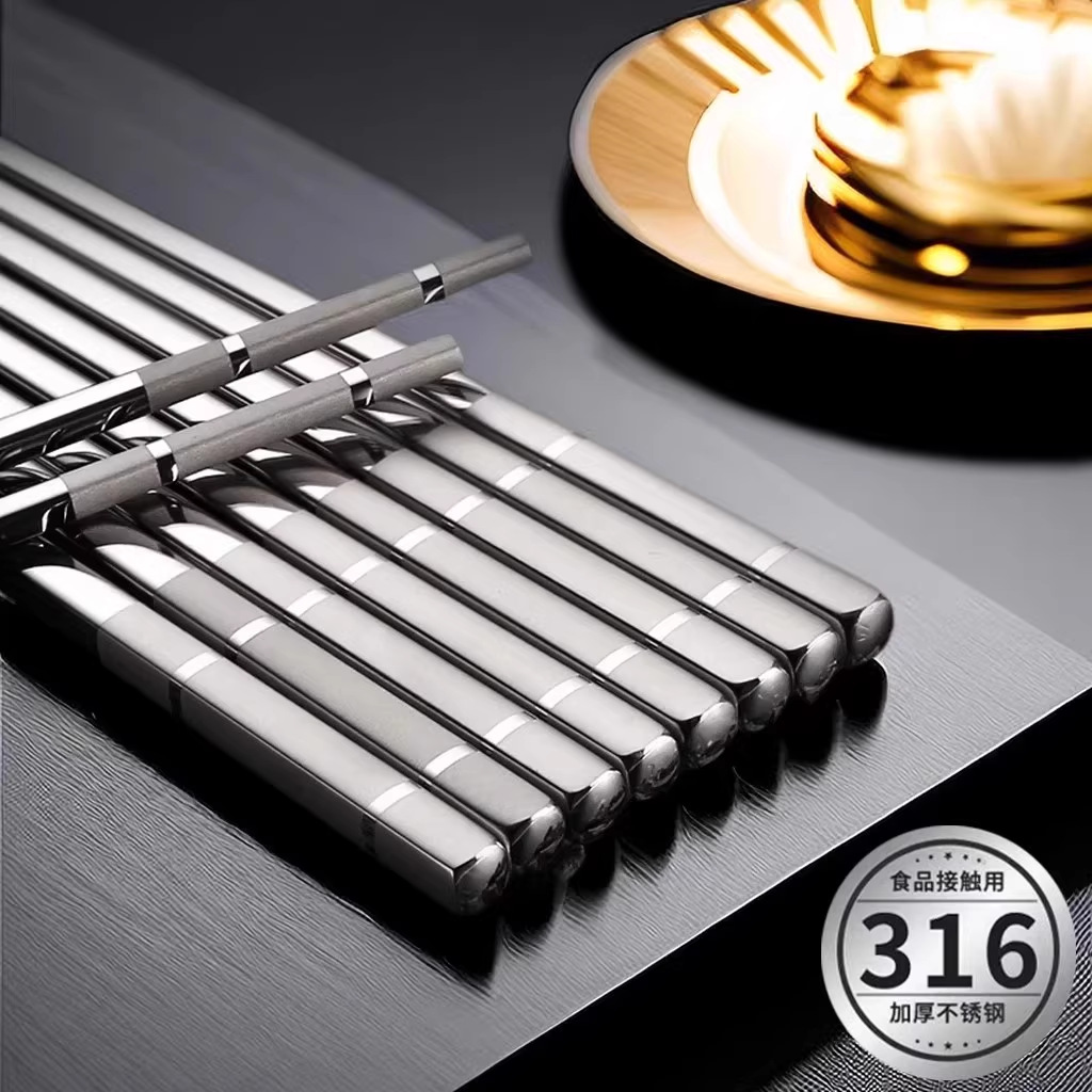 316不锈钢筷子家用高档简约防滑食品公筷加厚酒店餐具