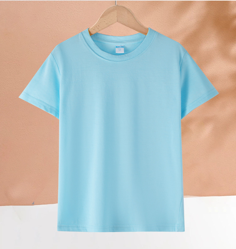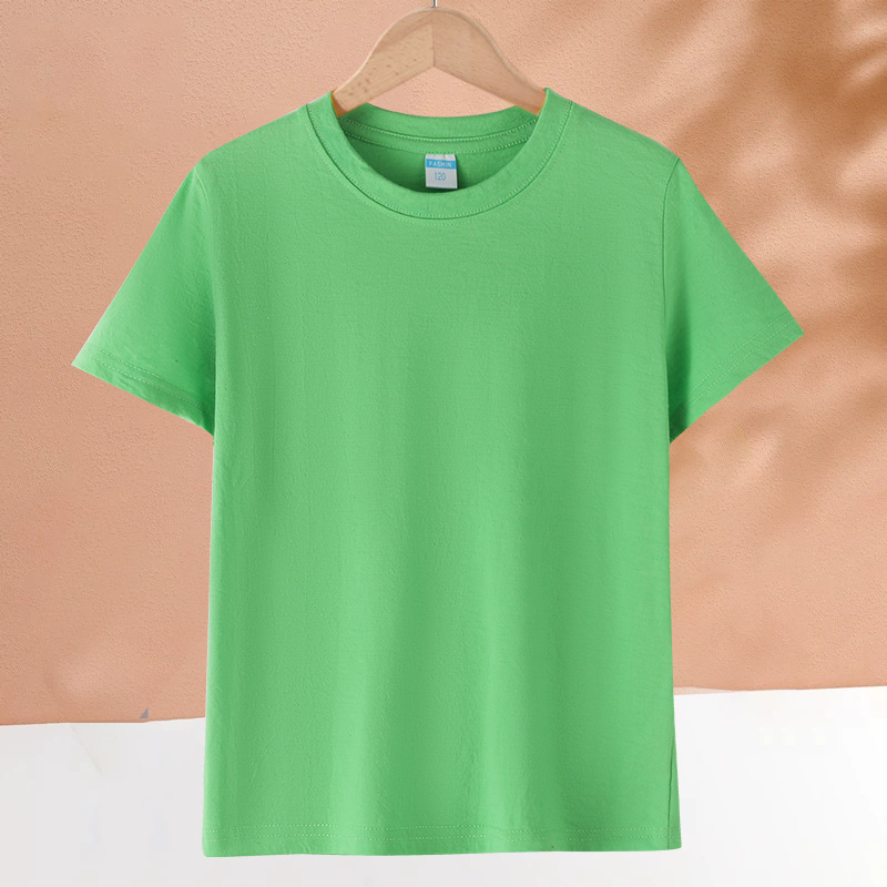メーカー卸売り子供カラーtシャツ精練綿CVCT tシャツ純色活動班服団体服親子服半袖