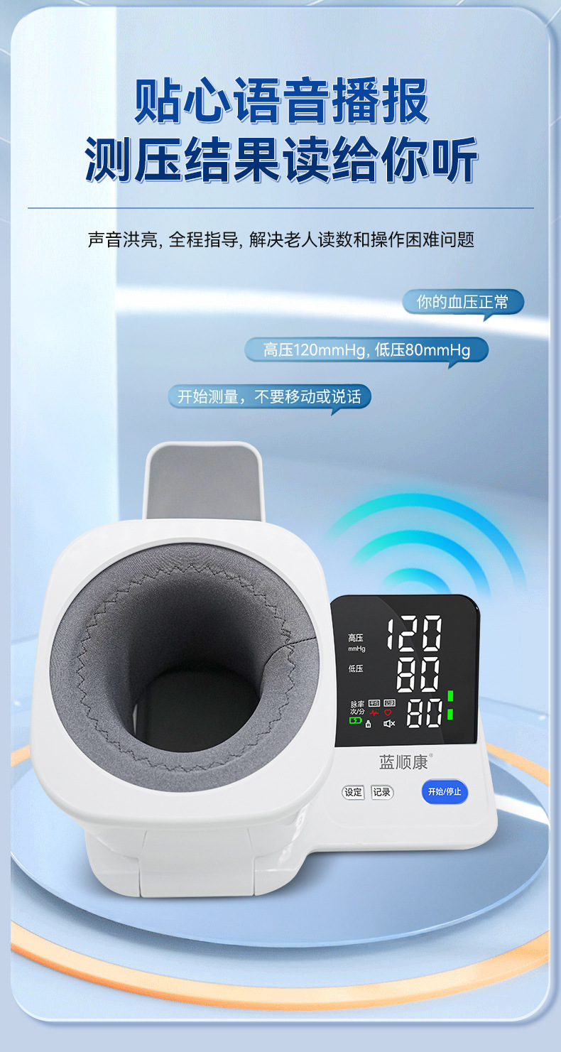 青順康アーム式電子血圧計家庭用スマート音声放送血圧測定器血圧計現物
