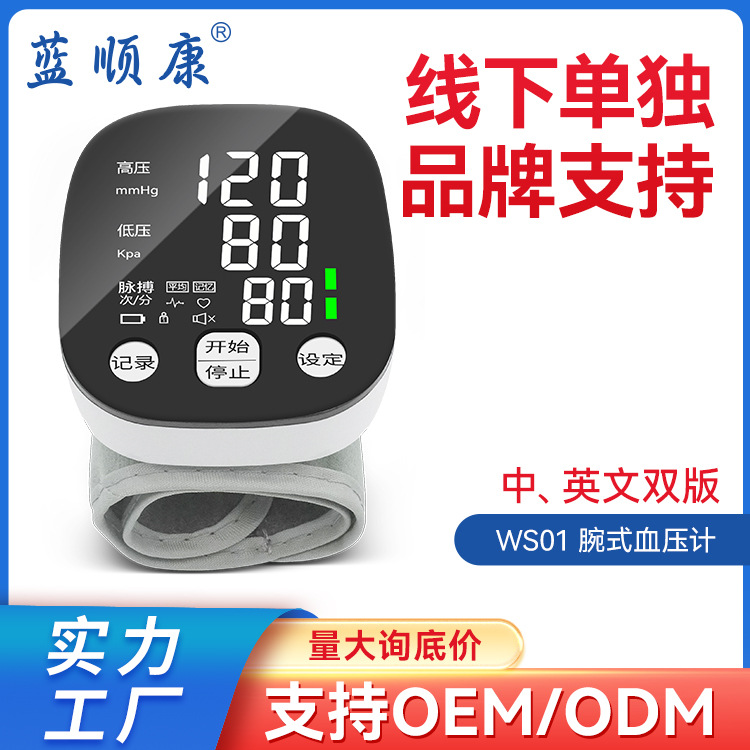 中国語・英語対応腕掛け式電子血圧計、家庭用高齢者向け高精度薬局仕様スマート血圧測定器、越境販売