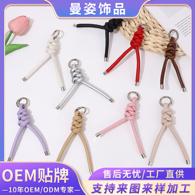 クロスボーダー爆金ファッションPUショート編みロープ百掛けアクセサリーdiy手編み自動車キーホルダー