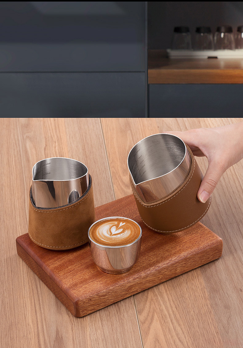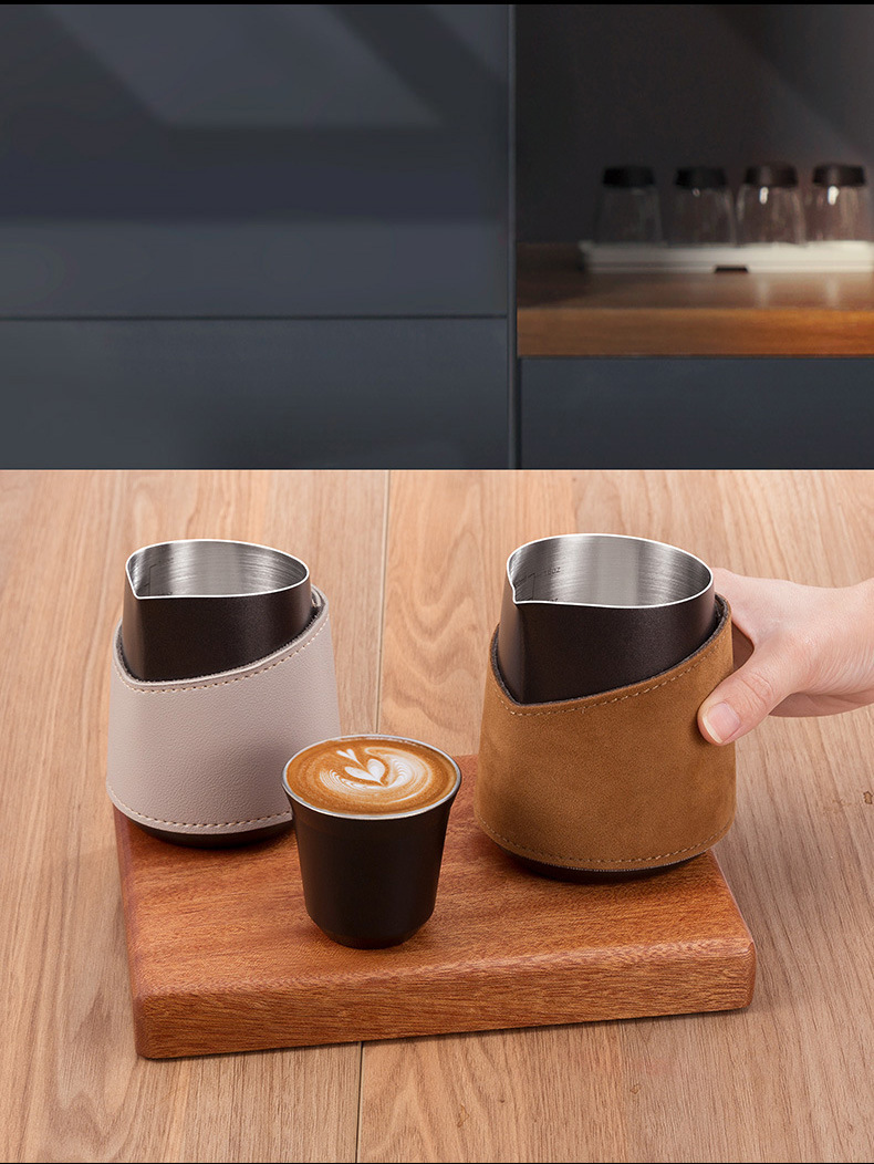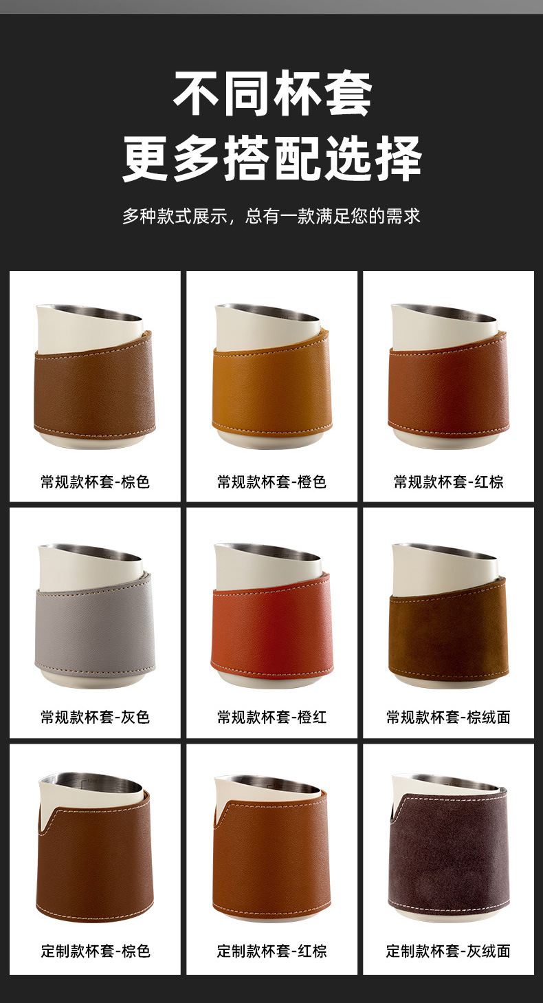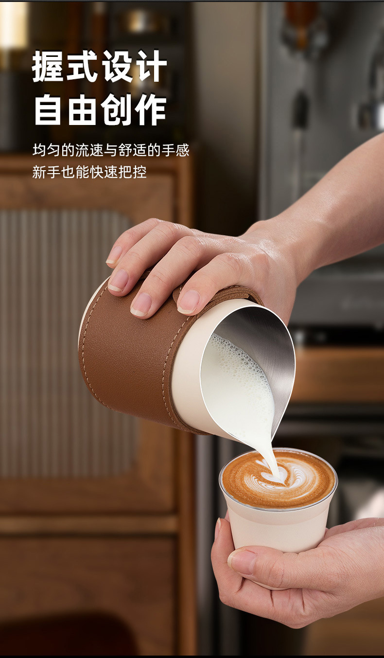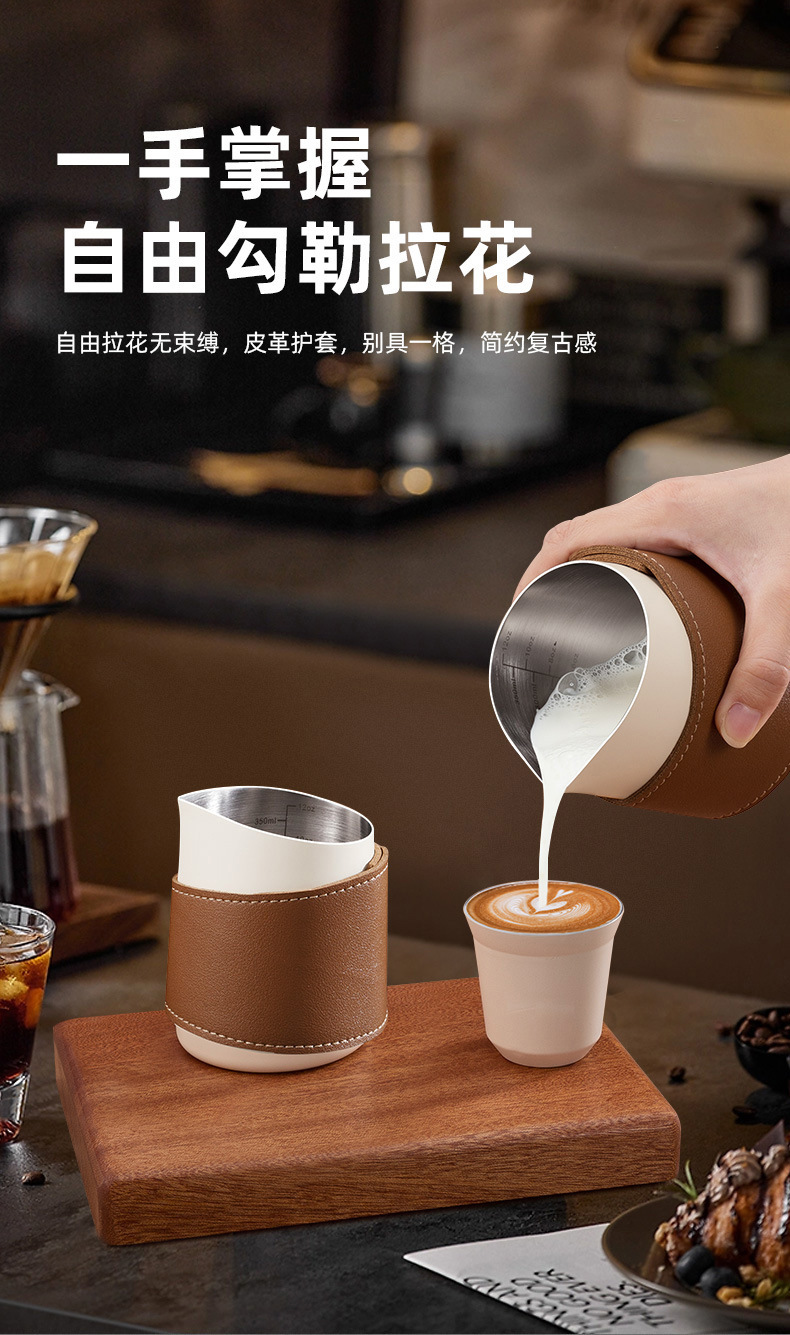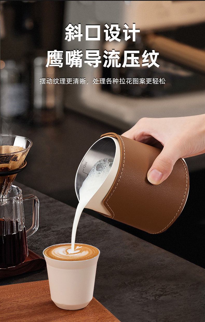 拉花缸带隔热皮套无柄拉花杯尖嘴意式600ML咖啡打奶泡缸杯奶泡壶