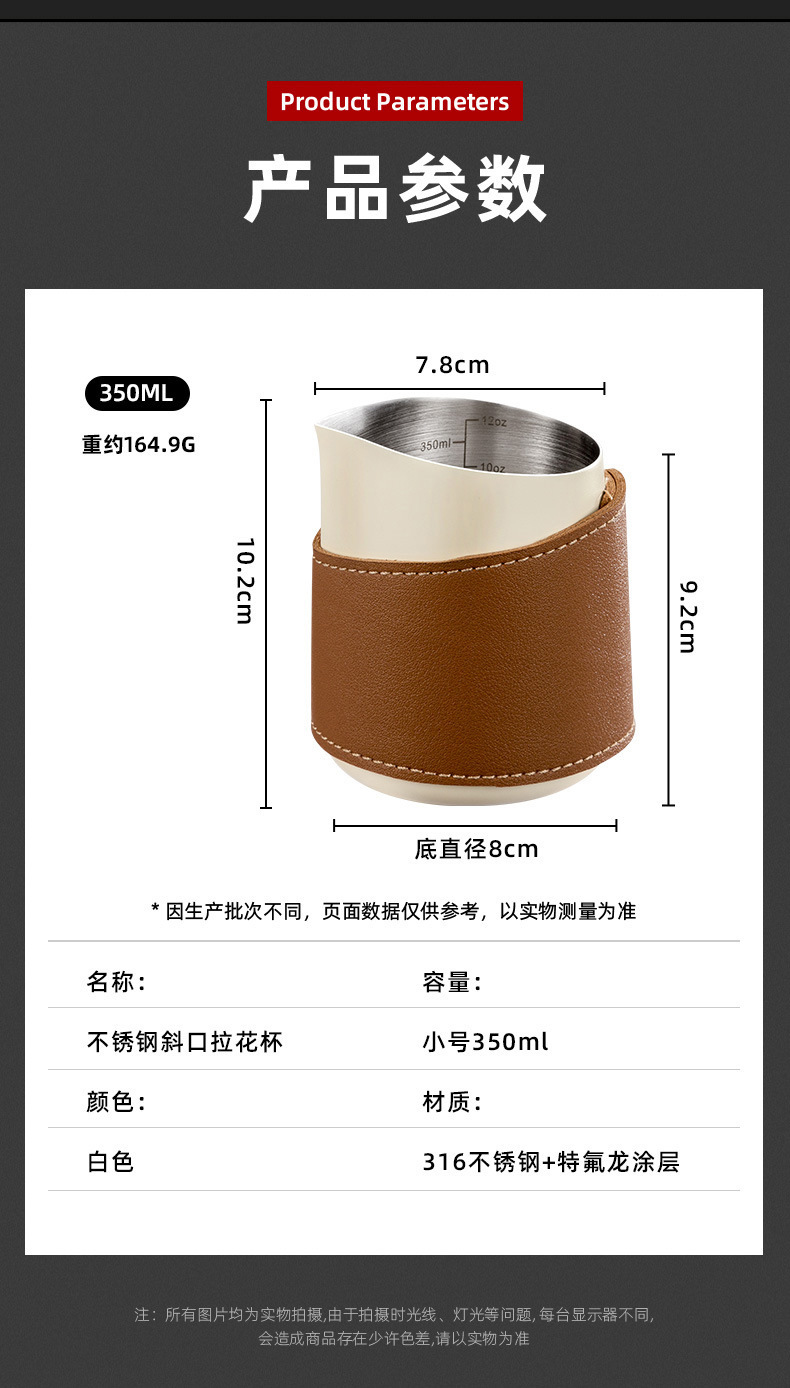 ✅款 惠家斜口拉花杯 304不锈钢 奶泡杯 无柄奶缸