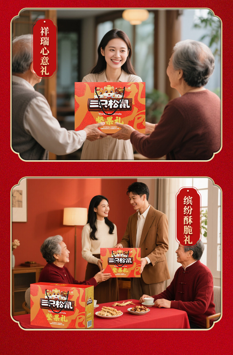新しい三リスナッツギフトボックスハニータイプ 1260 グラム/7 缶詰中秋節ギフトパッケージミックス