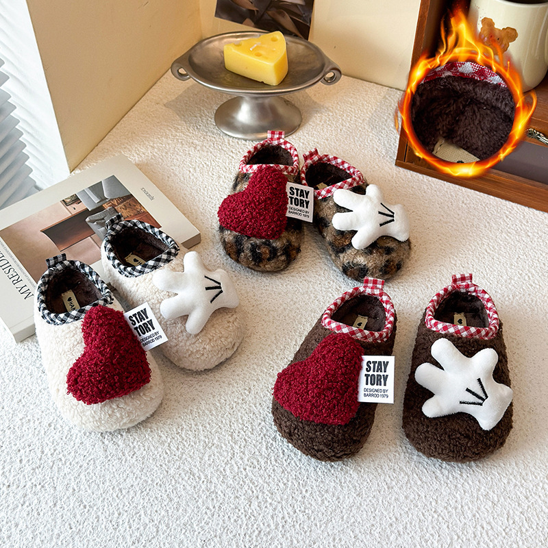 男女童鞋冬季加绒AB款玩偶豹纹棉鞋一脚蹬宝宝防滑保暖半拖毛毛鞋