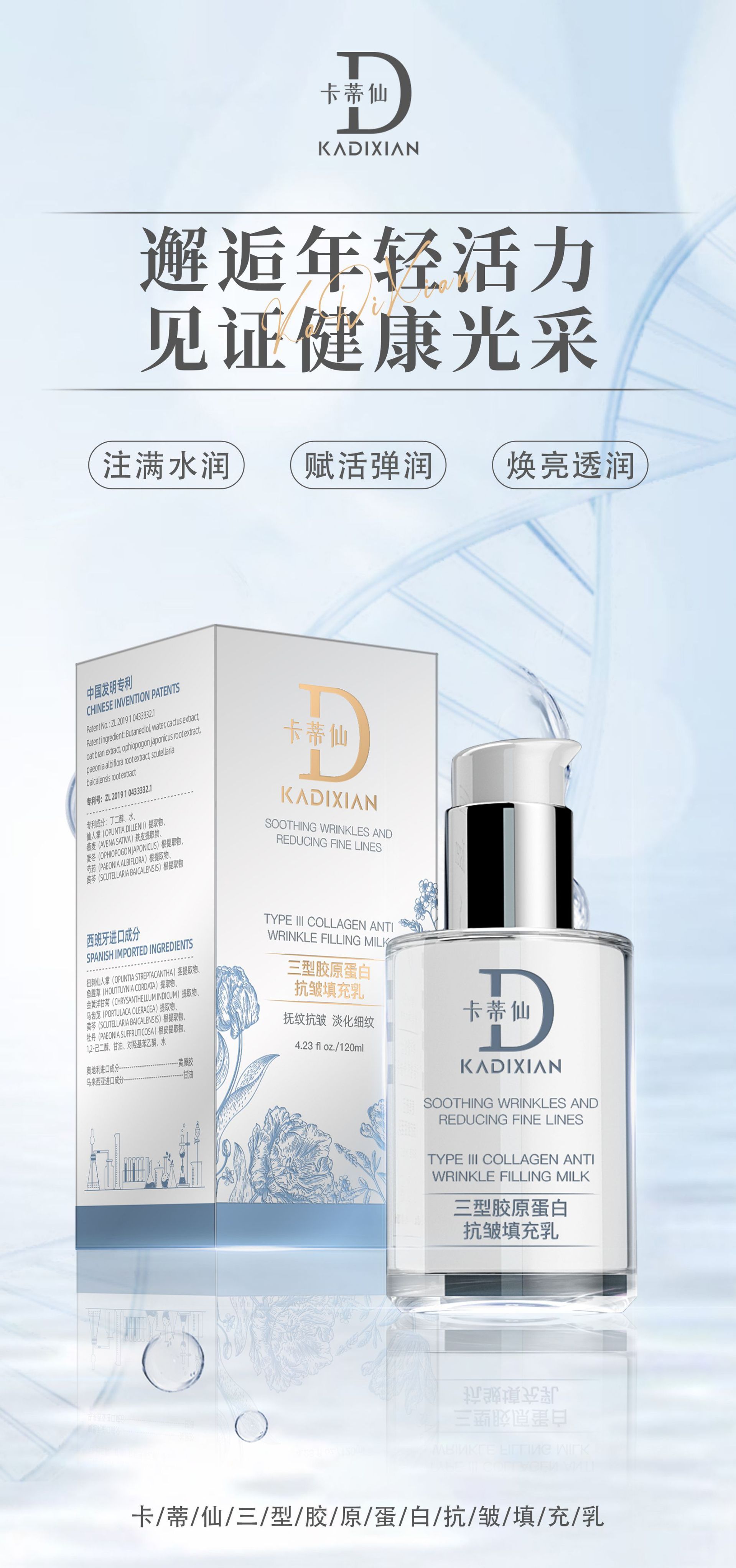 DYDY三型コラーゲン抗シワ充填乳は細目の保湿乳液をしっかりと薄めます。