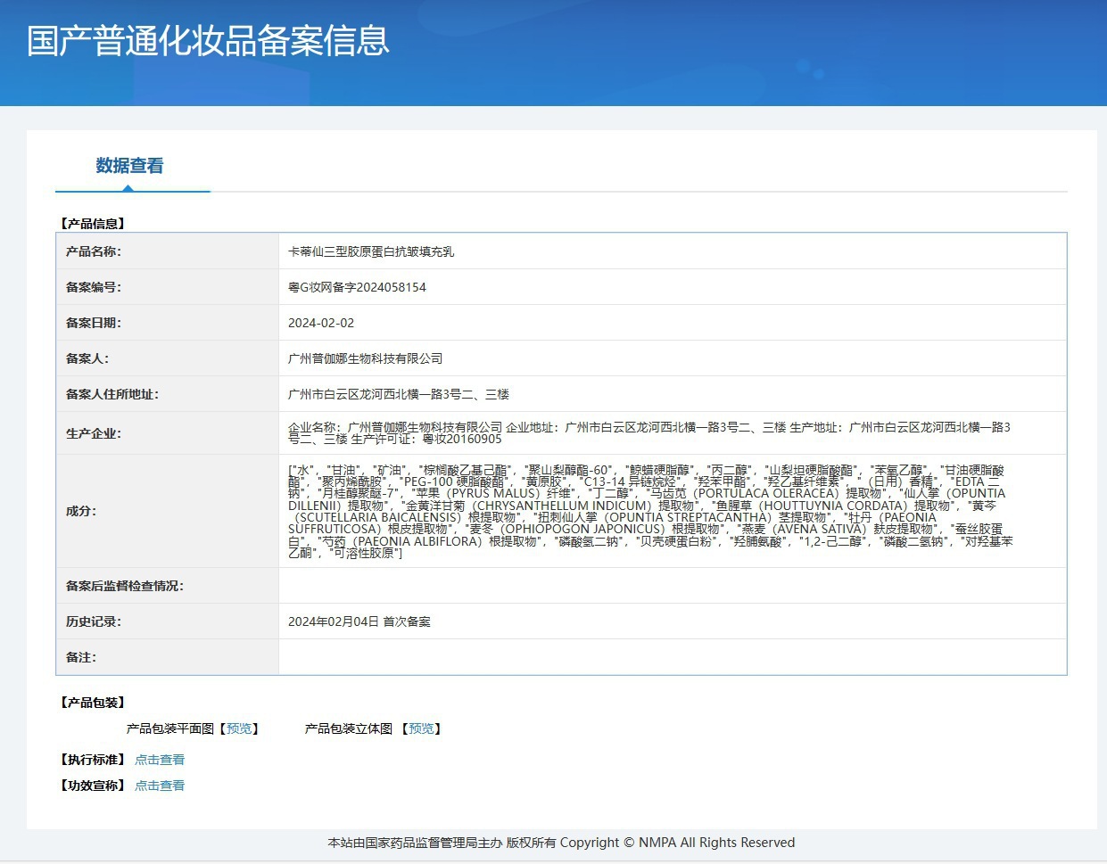 特殊化粧品登録証番号 広東省Gメイクアップネットワーク準備番号2024058154