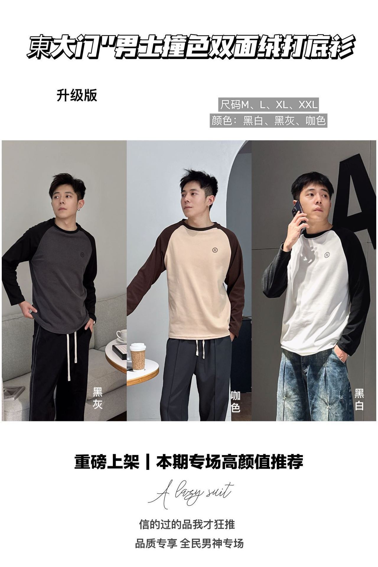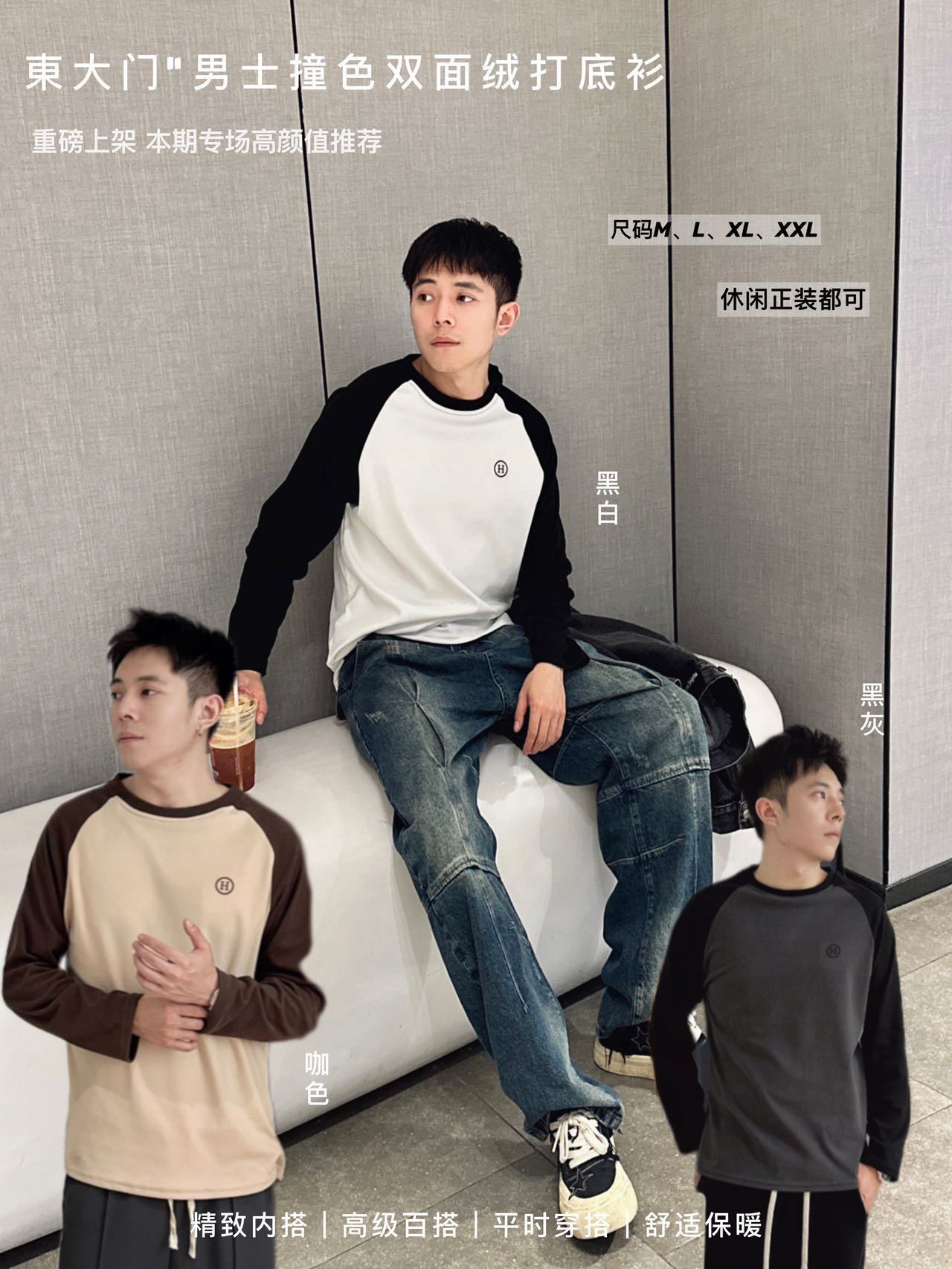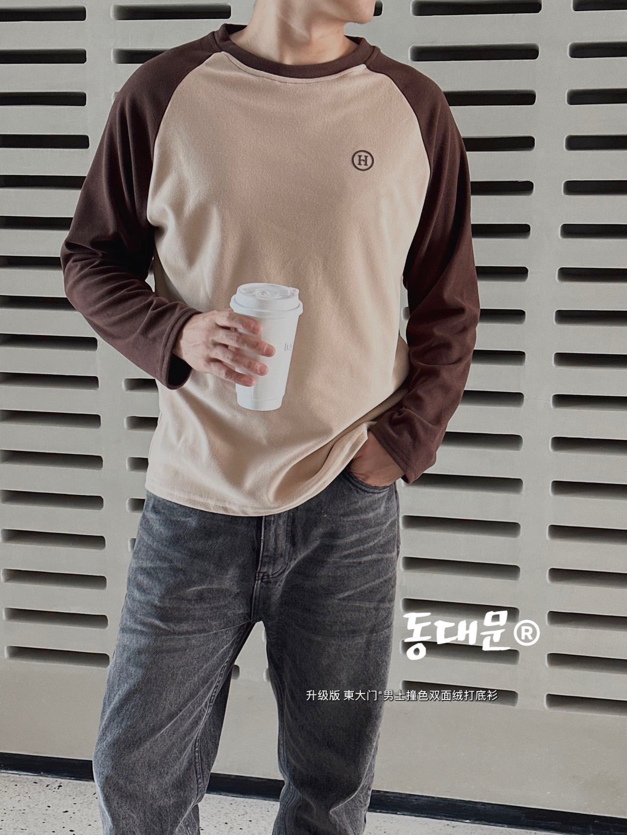 升级版 東大门"男士撞色双面绒打底衫