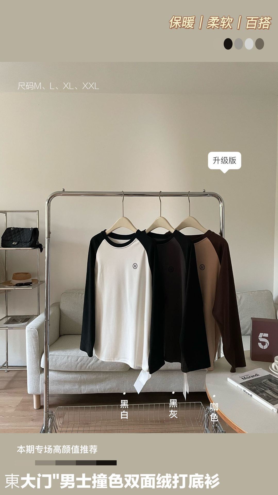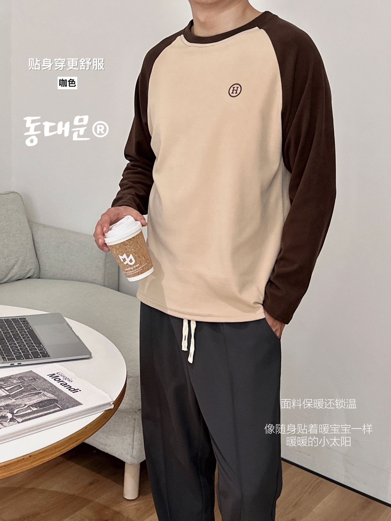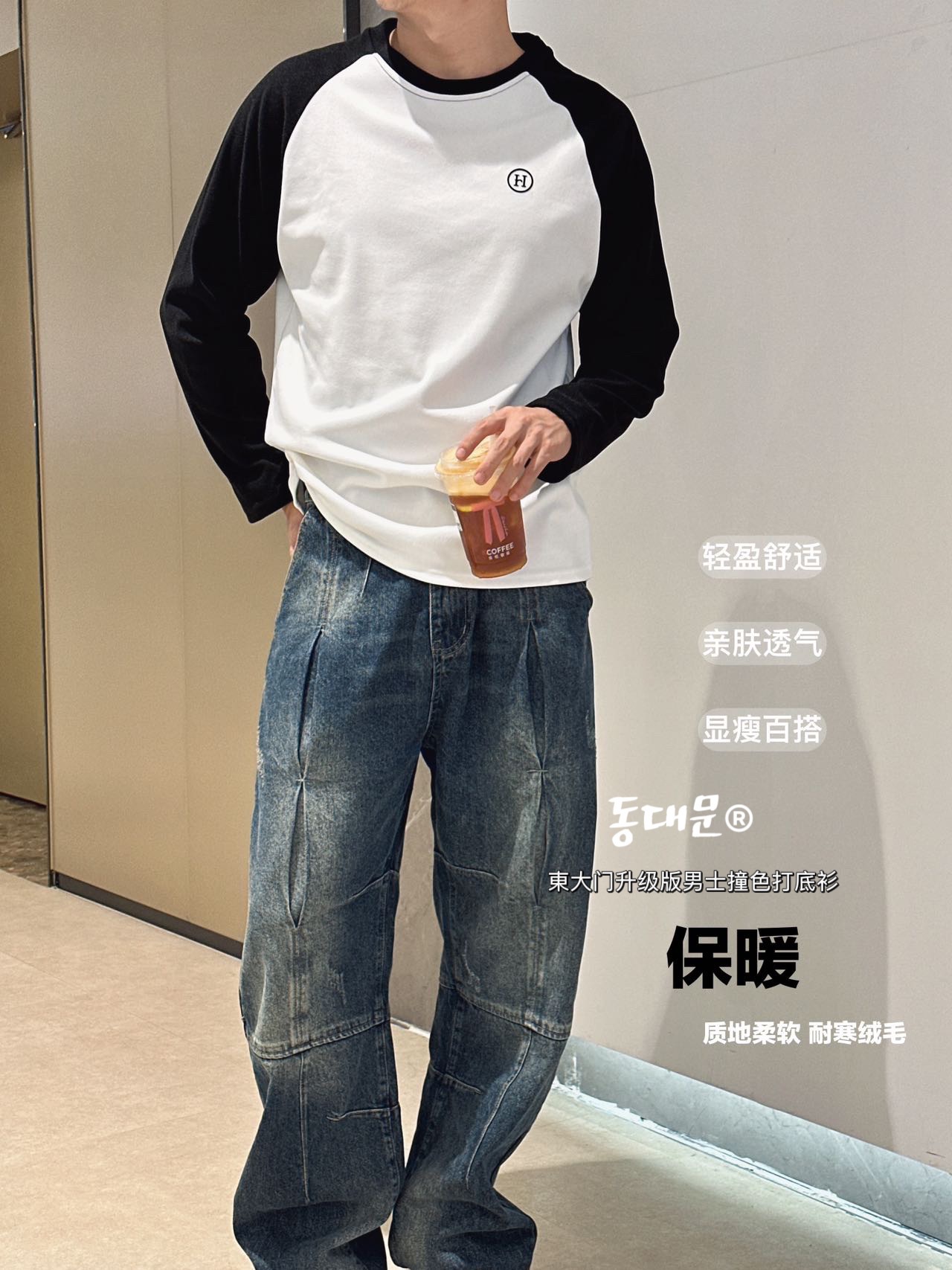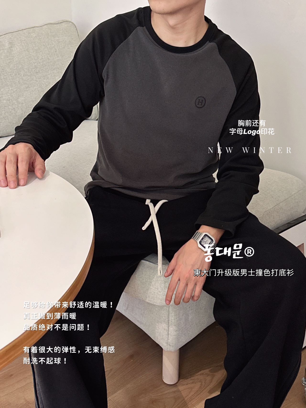 升级版 東大门"男士撞色双面绒打底衫