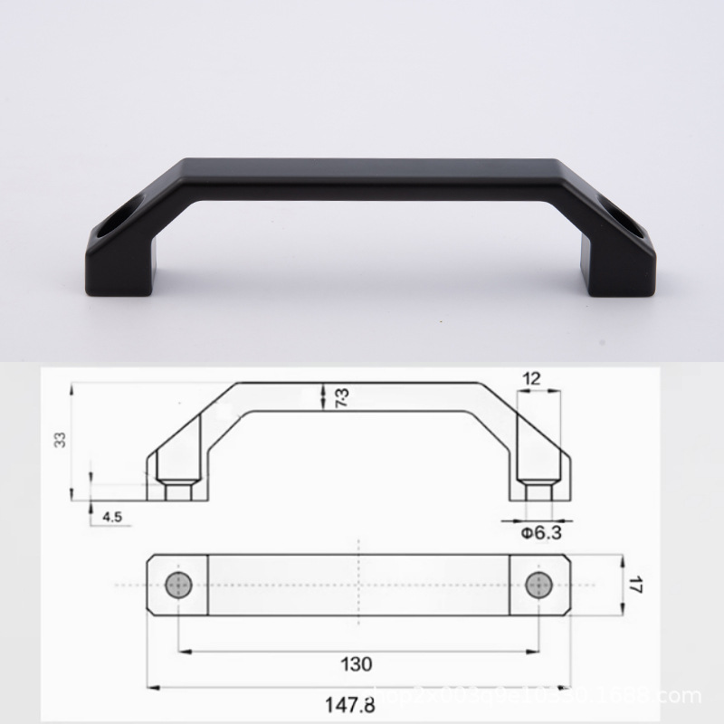 加强筋尼龙拉手 方形把手工业设备机柜门黑色塑料加厚U型把手