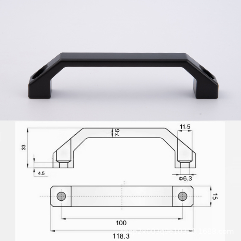 角型ナイロン取っ手プラスチック取っ手厚いアルミ合金明装式工業溶接ケースプラスチック取っ手90mm