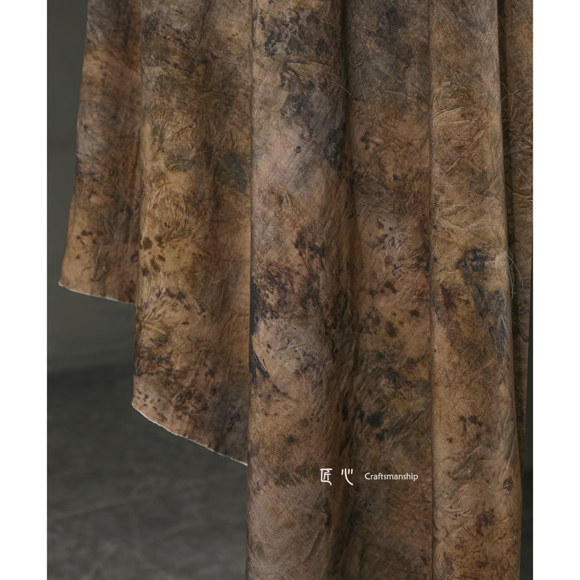 黄色と黒の斑点のある敦煌わびさびスタイルの植物染めプリント中国風シャツ、キュロット、バッグ、衣類デザイナー生地