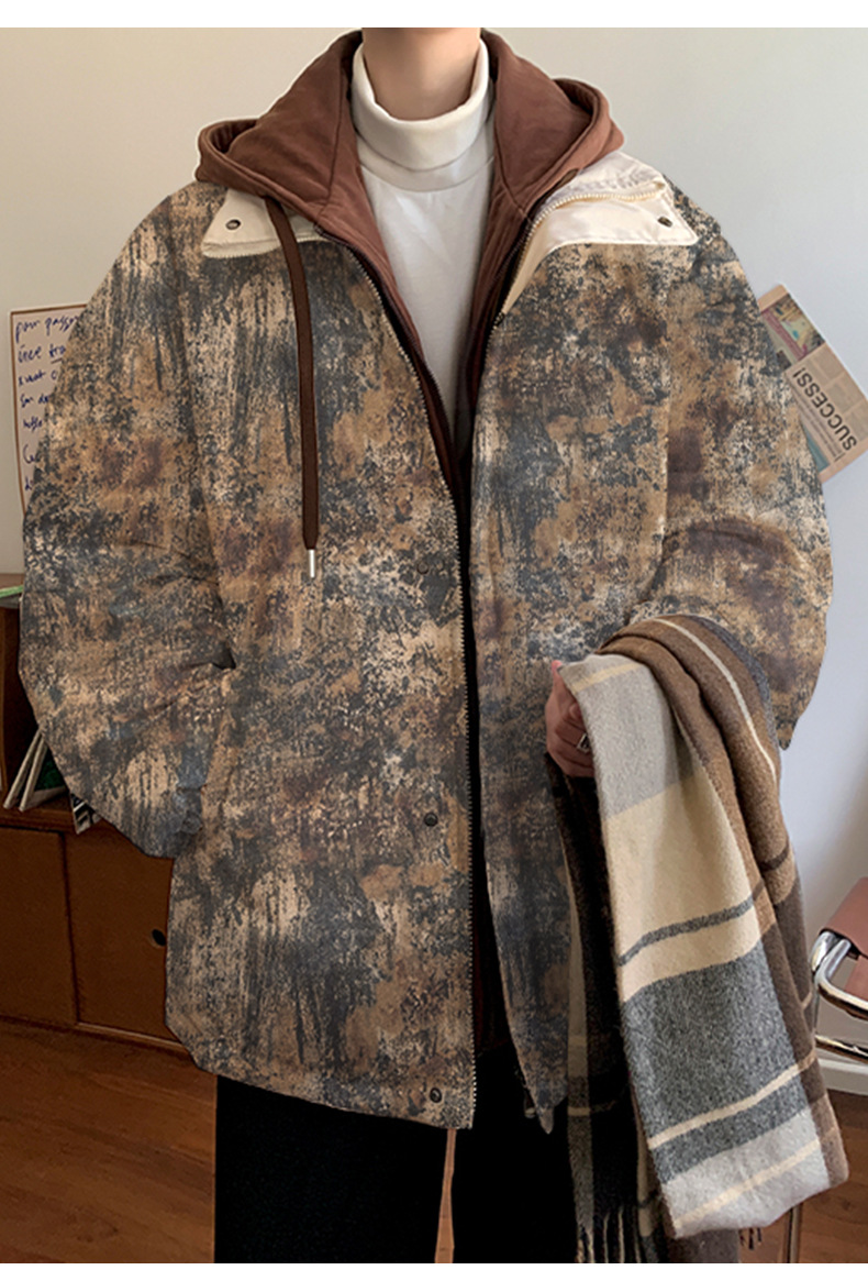 茶色の暗い花の傷跡の綿麻の布地は色を炒めて洗って古いスーツのコートをします。