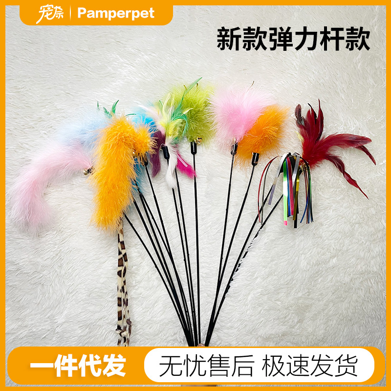 Amy & carol弾力棒シリーズ逗猫棒鶏毛兎毛材質ppプラスチック棒鈴猫玩具