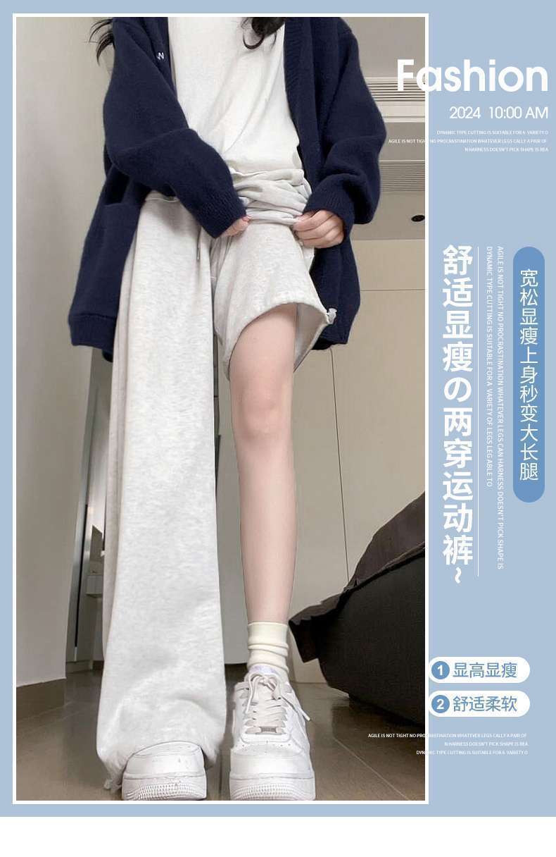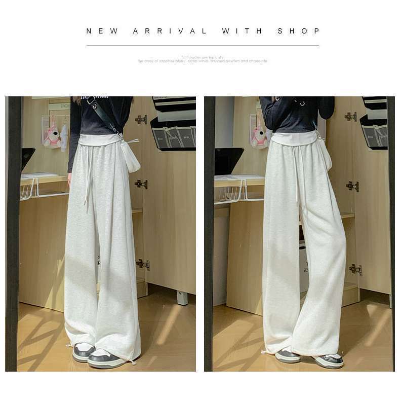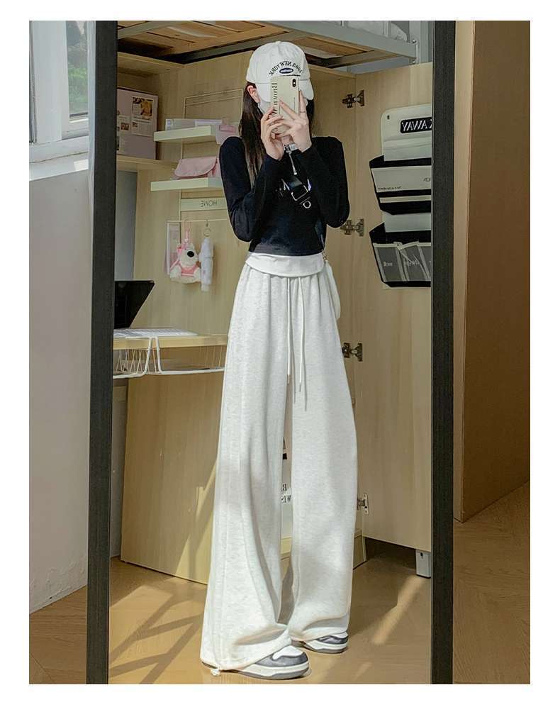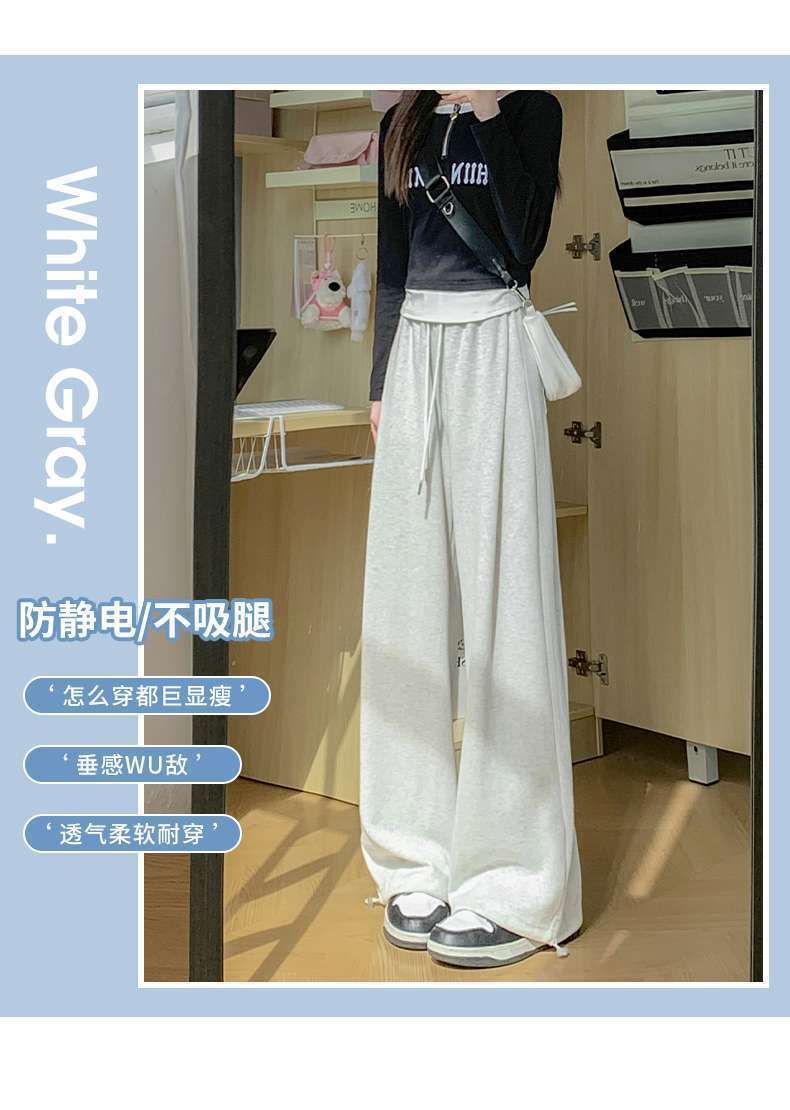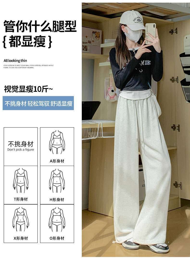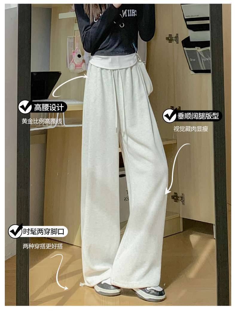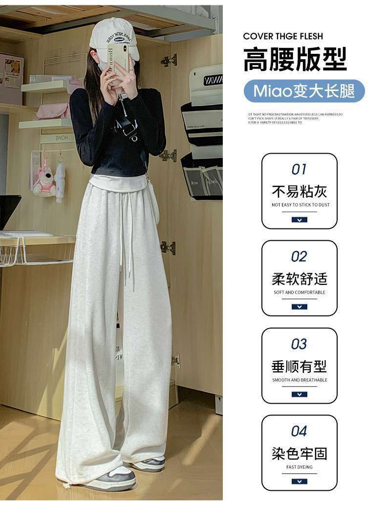 スポーツパンツ女子2024新型ワイドパンツ春秋冬高腰垂感ゆるいストレートカジュアルパンツ