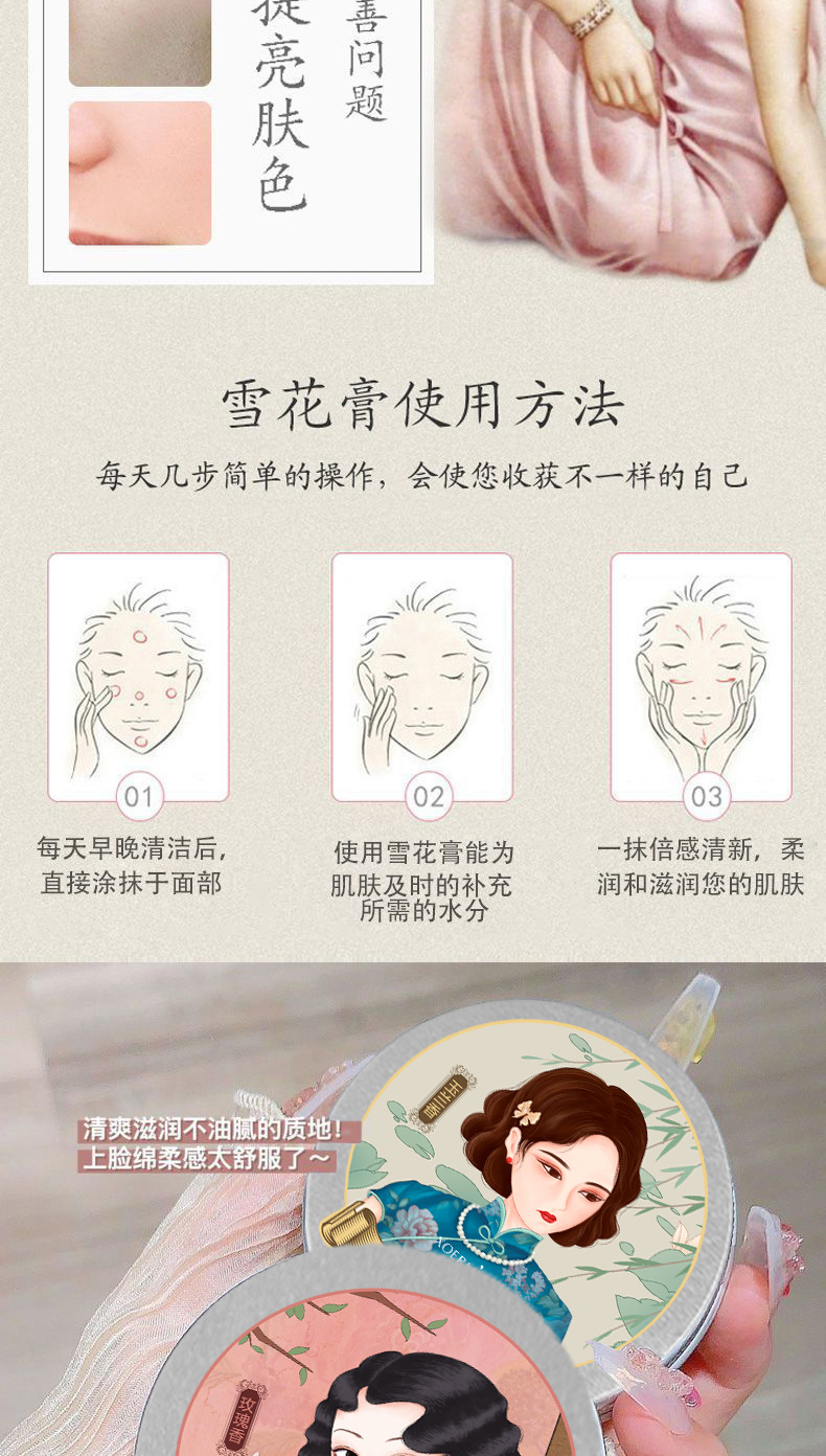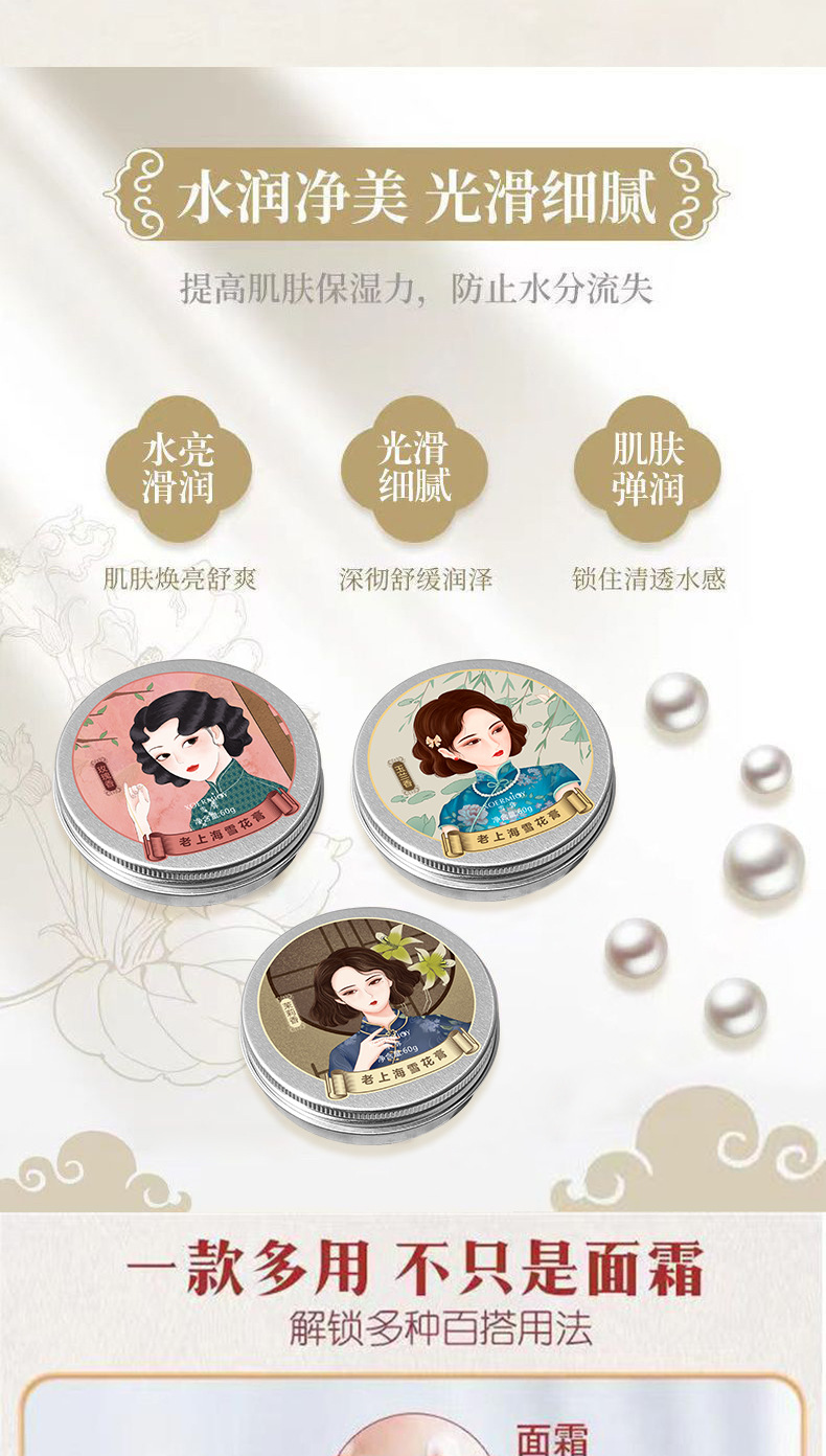 雪弥老上海雪花膏薔薇茉莉玉蘭香補水保湿潤いクリーム国産スキンケア