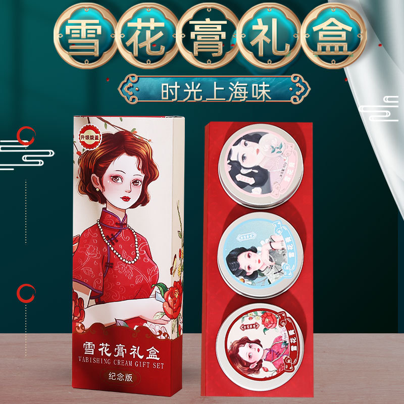 雪弥老上海雪花膏礼盒玫瑰茉莉玉兰补水保湿滋养润肤面霜厂家直销