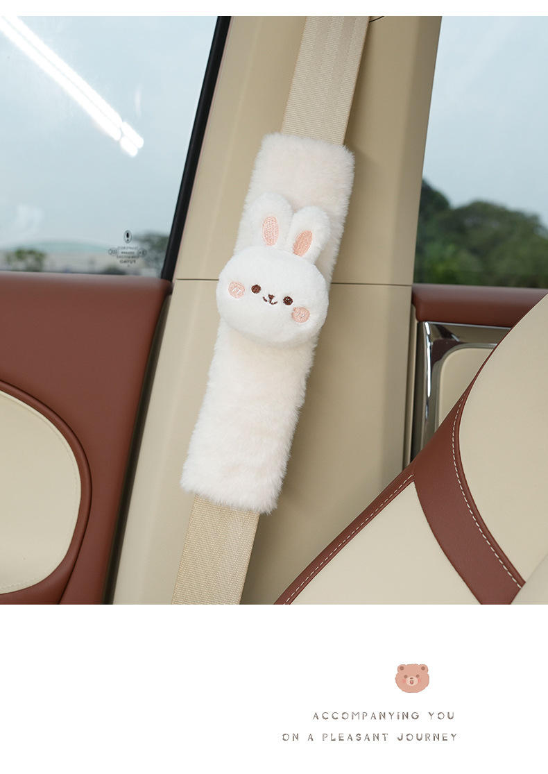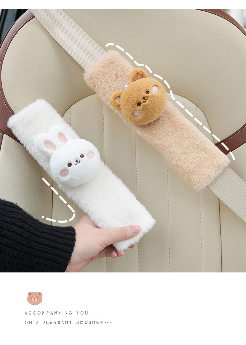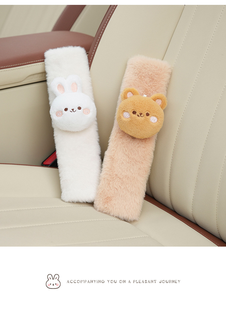 ブルーレイン安全ベルトショルダープロテクター、キュートなクマとウサギの車用安全ベルト保護カバー、車載用漫画風ぬいぐるみ、首を締め付けないショルダープロテクター