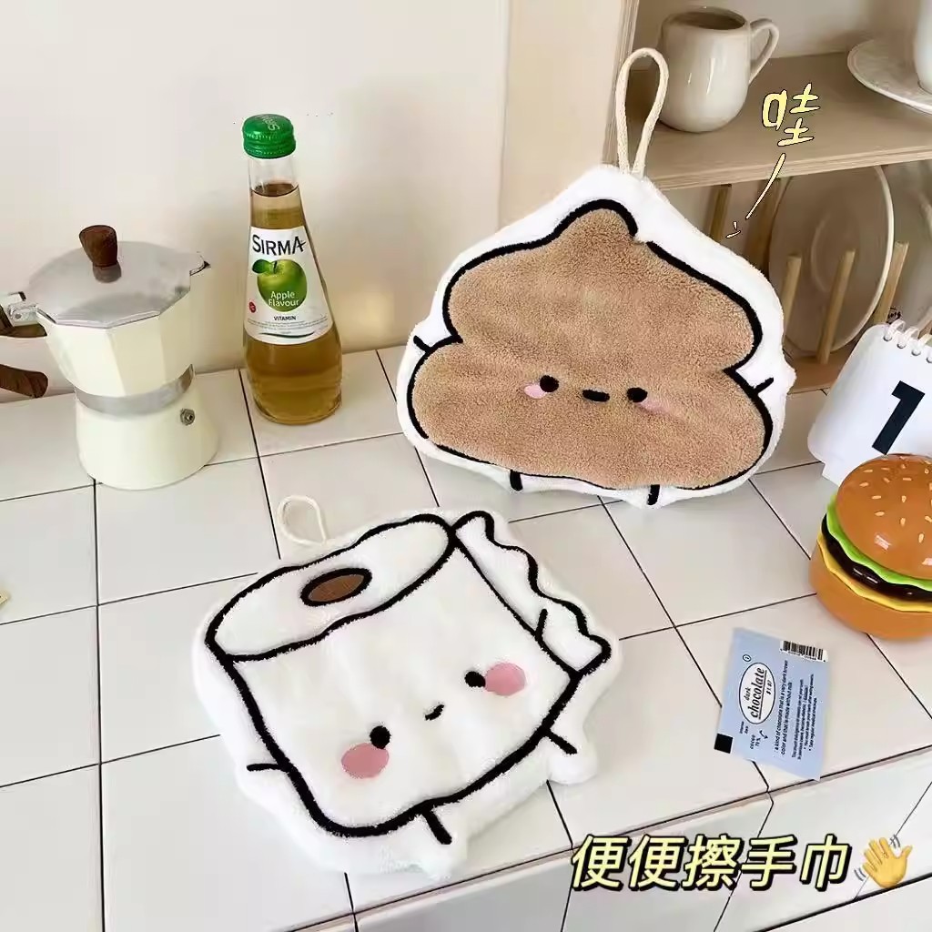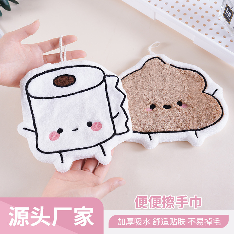 跨境创意卡通便便珊瑚绒可挂式擦手巾除臭浴室厕所小毛巾一件代发