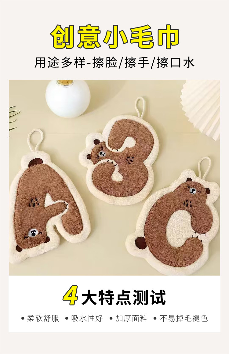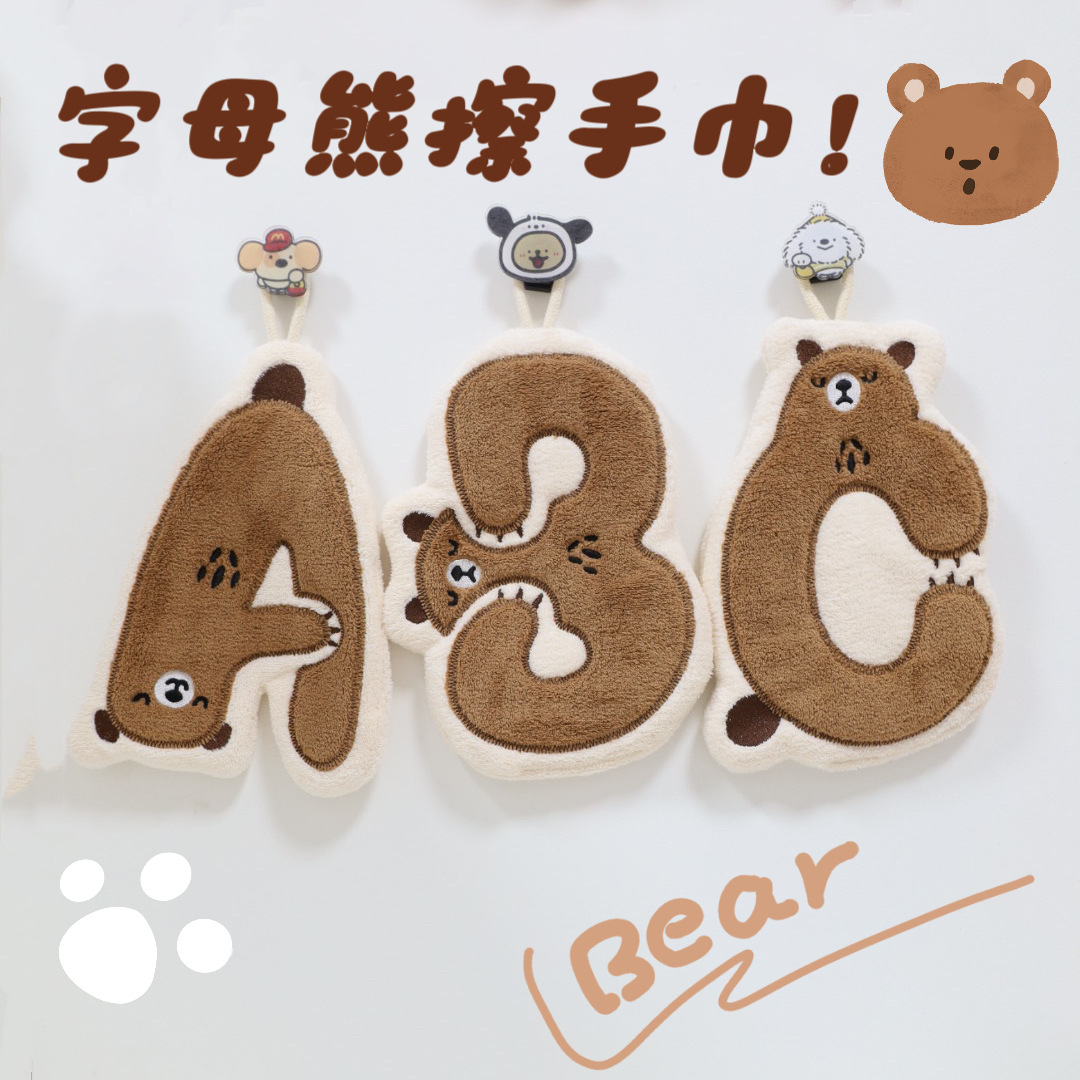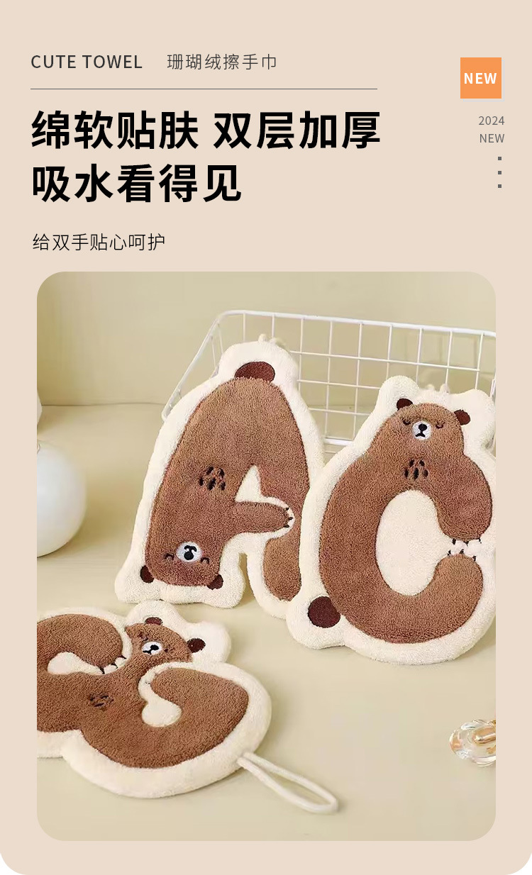 向峰新熊ABC手拭きタオルサンゴ毛吸水かわいい掛け式柔らかい台所の子供の手拭きタオル卸売り