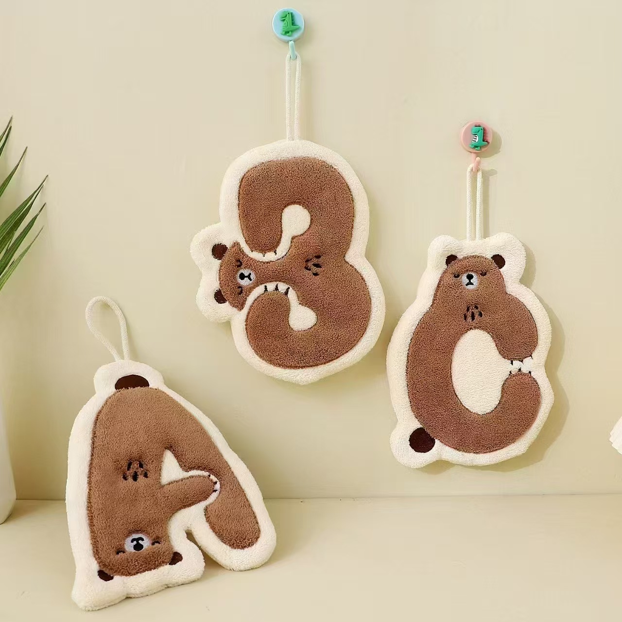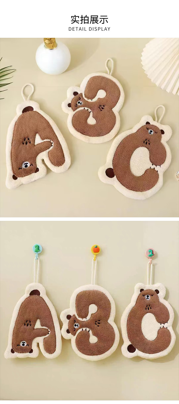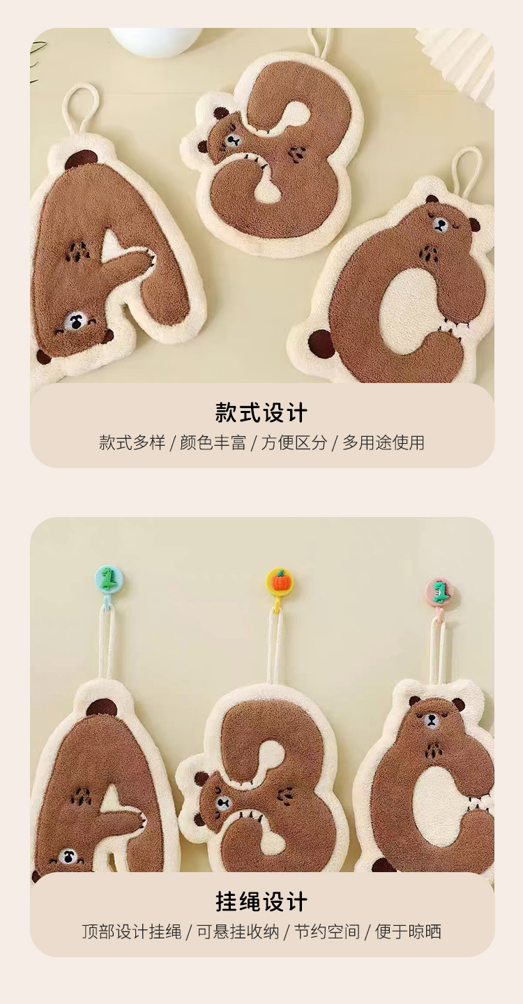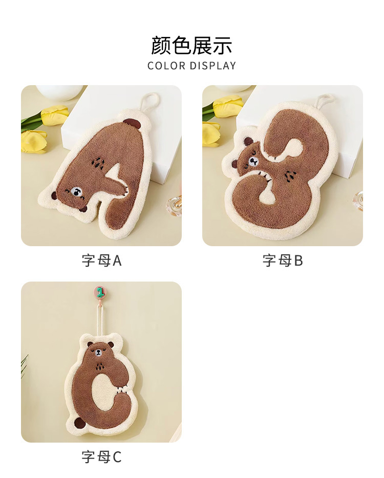 珊瑚绒字母熊擦手巾可挂厨房卫生间挂式吸水挂巾小毛巾吸水速干