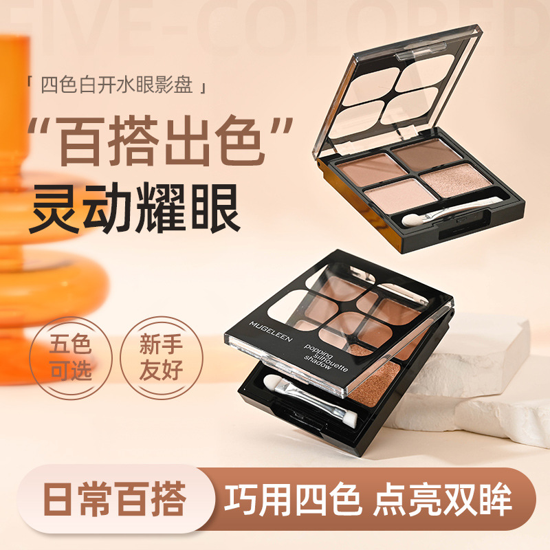 韩式新款白开水四色眼影香槟温柔奶茶色细腻贴肤不结块眼影盘批发