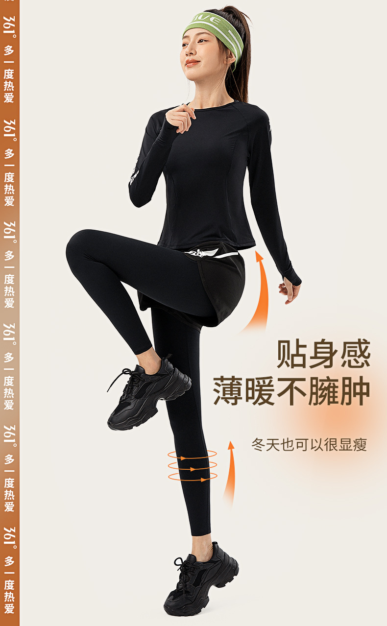 361ヨガパンツにベルベットをつけて秋冬の高腰ランニングフィットネスパンツヨガ服に偽の2枚のスポーツパンツの女性を厚くする