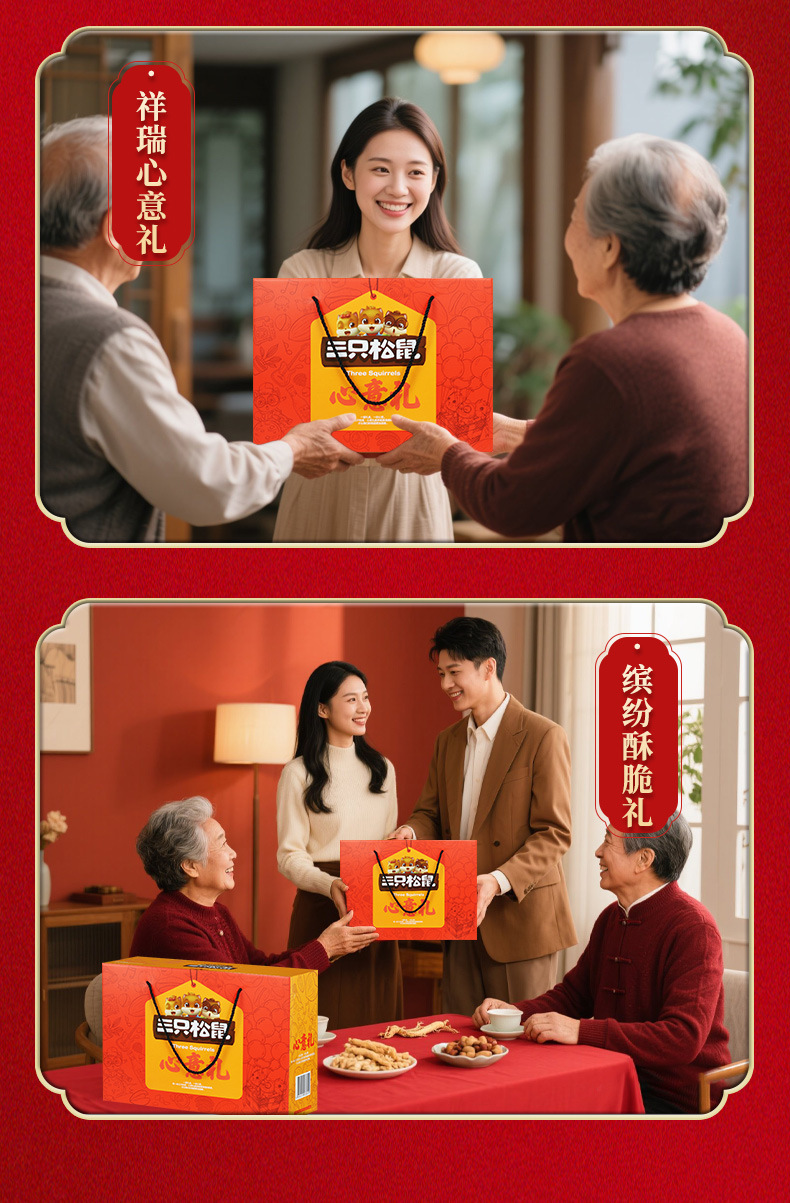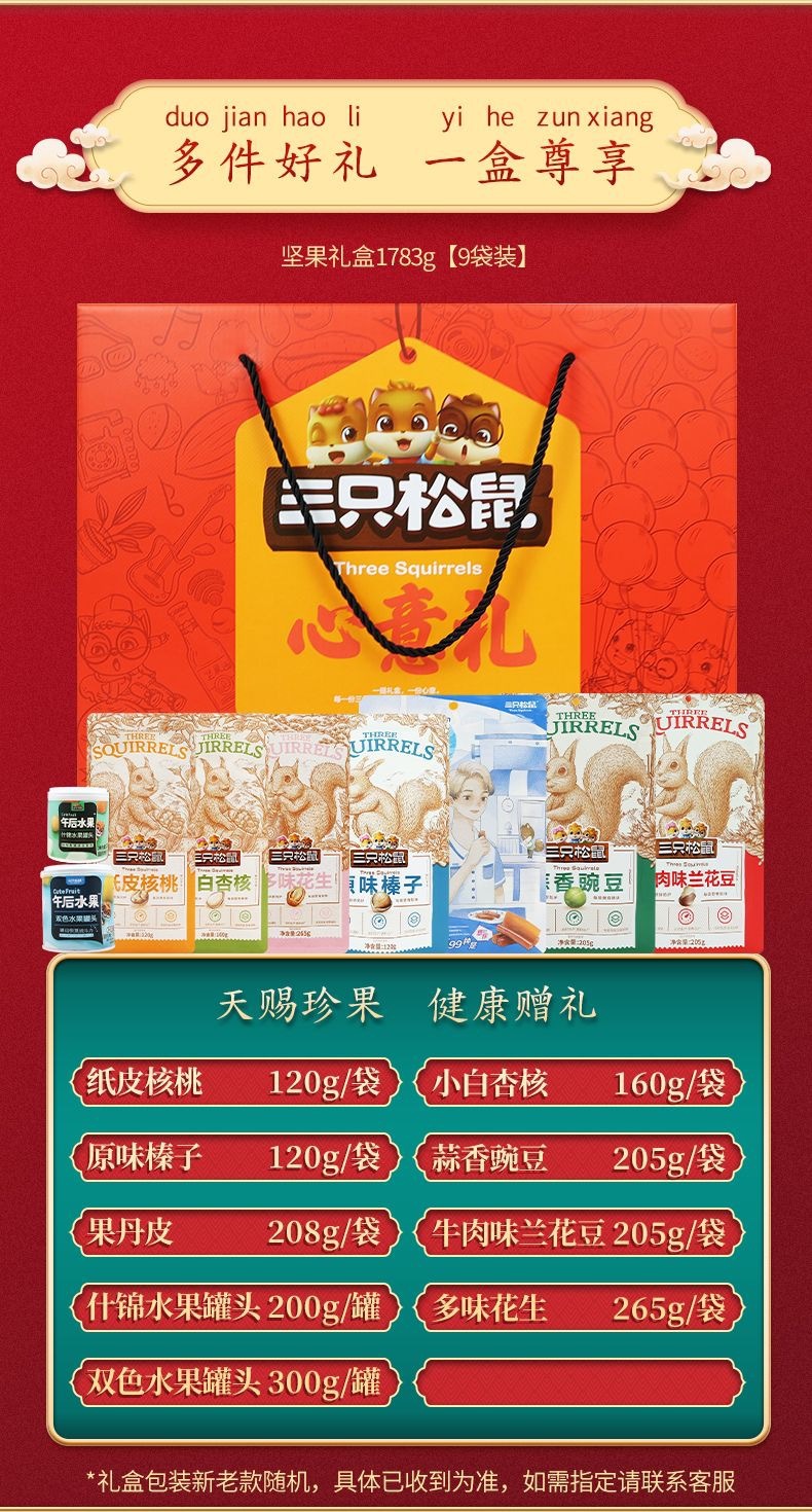 新しい三リスナッツギフトボックスハニータイプ 1260 グラム/7 缶詰中秋節ギフトパッケージミックス