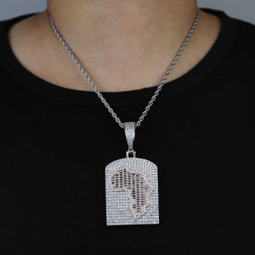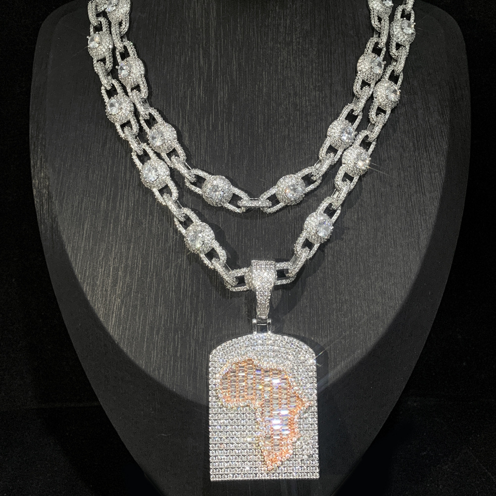 外国貿易の新型の2色の盾のジルコンのペンダントのヒップホップの男性のネックレスのセットのhiphopの潮流のアクセサリの現物
