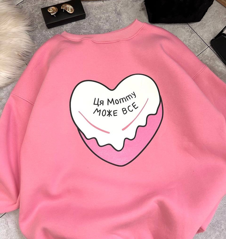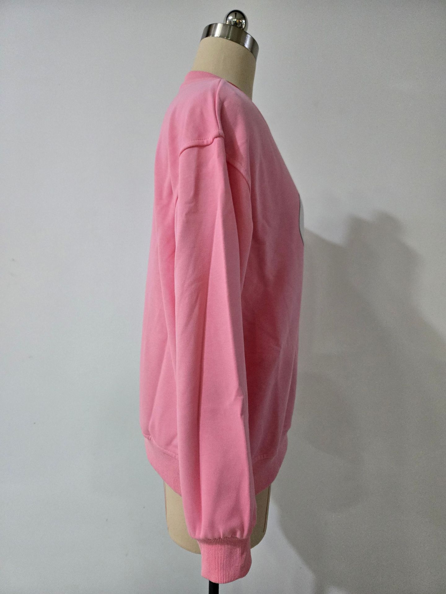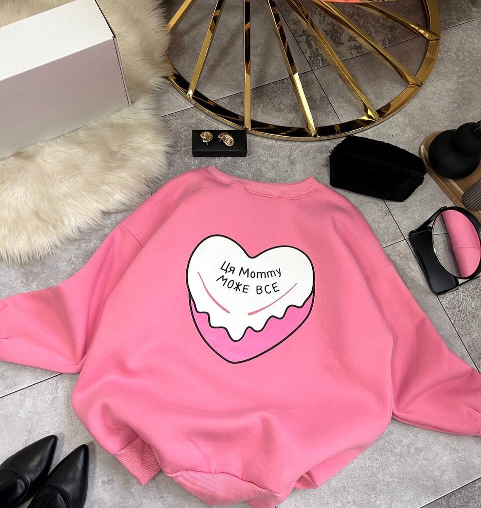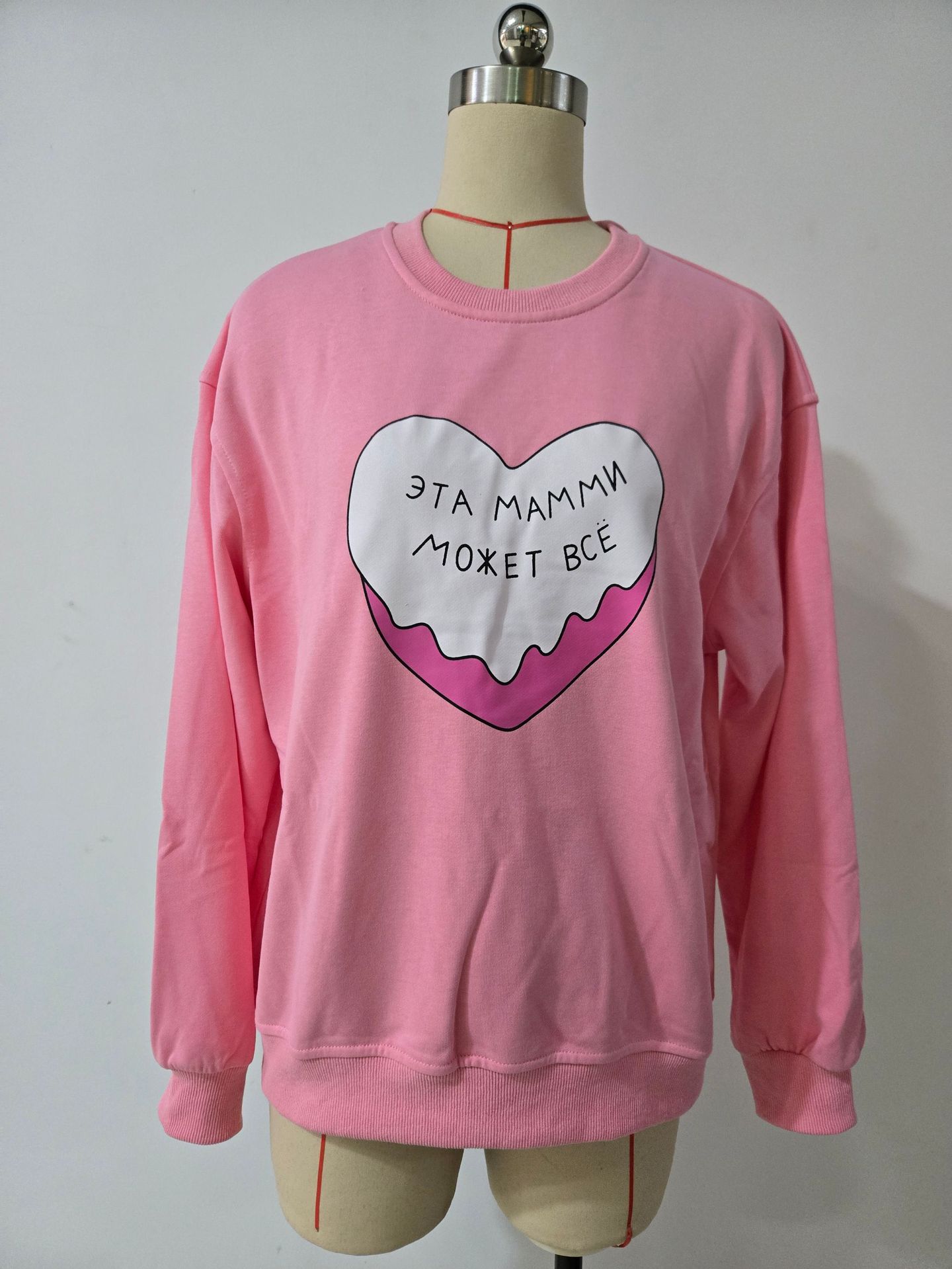 名称:多巴胺粉色爱心印花圆领套头卫衣女潮牌秋冬加绒保暖Oversize上衣