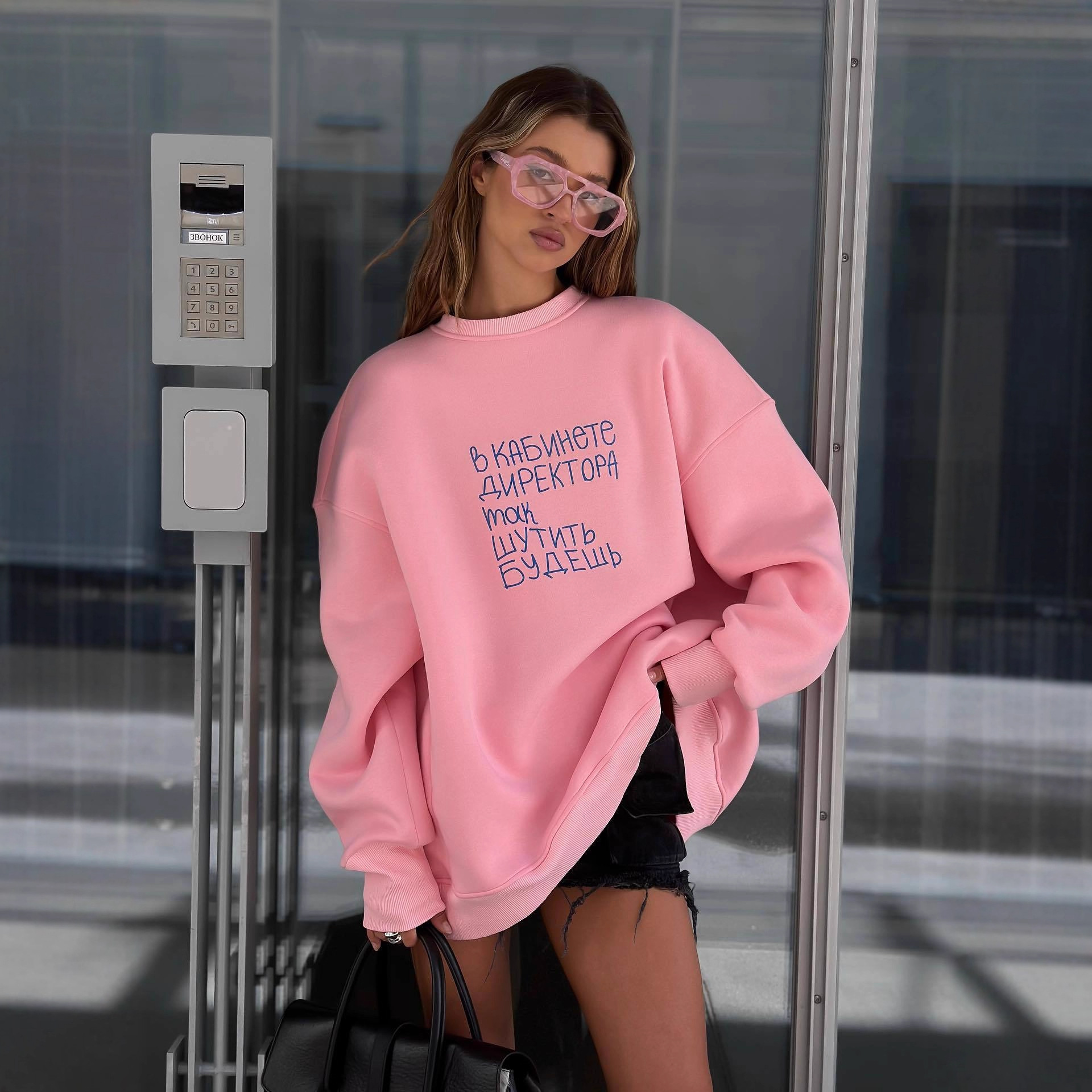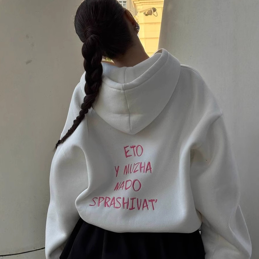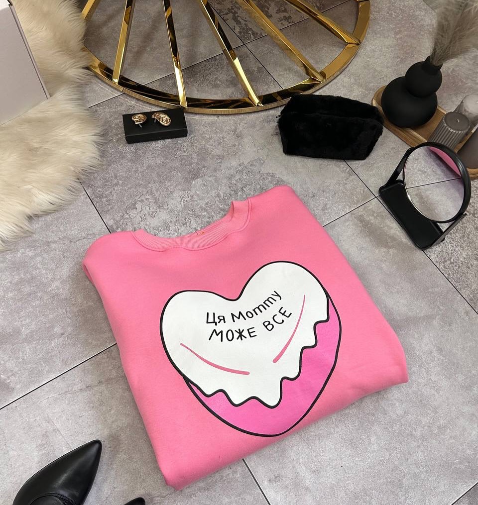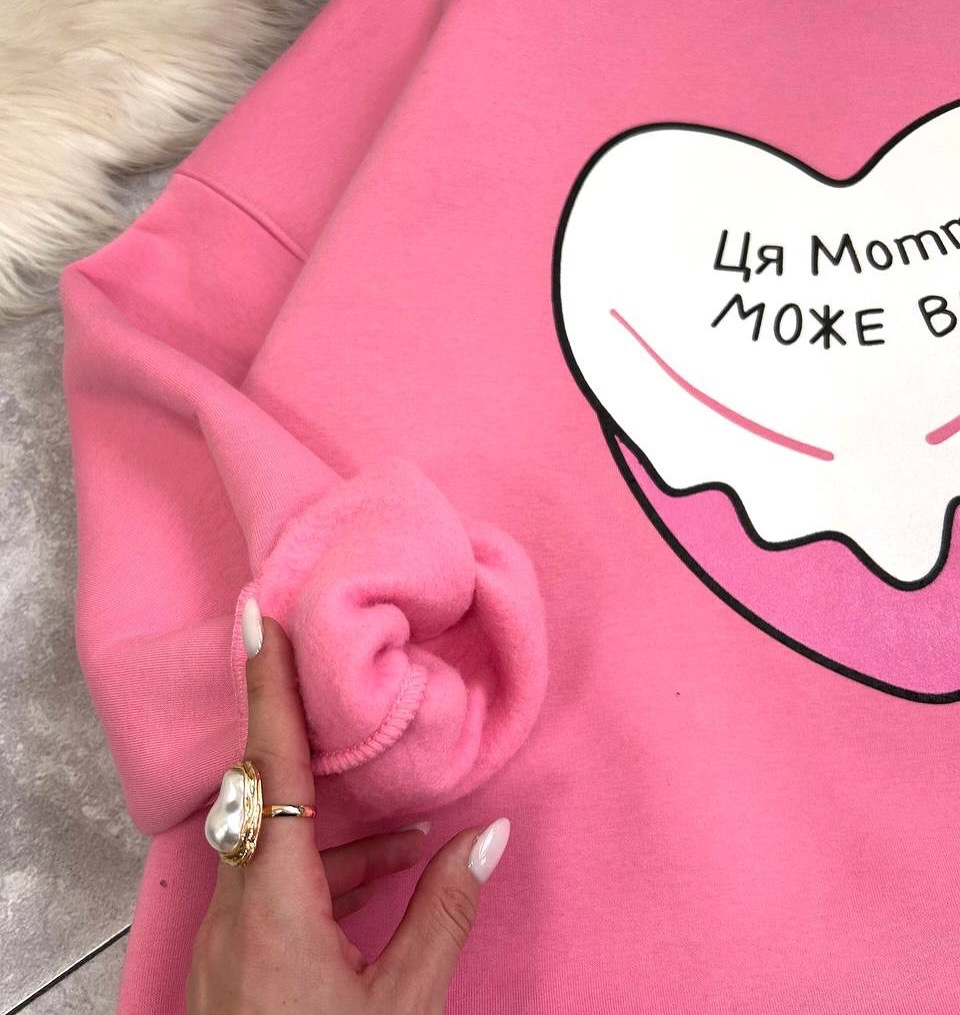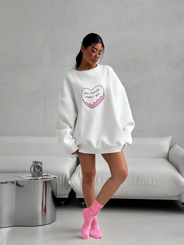 名称:多巴胺粉色爱心印花圆领套头卫衣女潮牌秋冬加绒保暖Oversize上衣