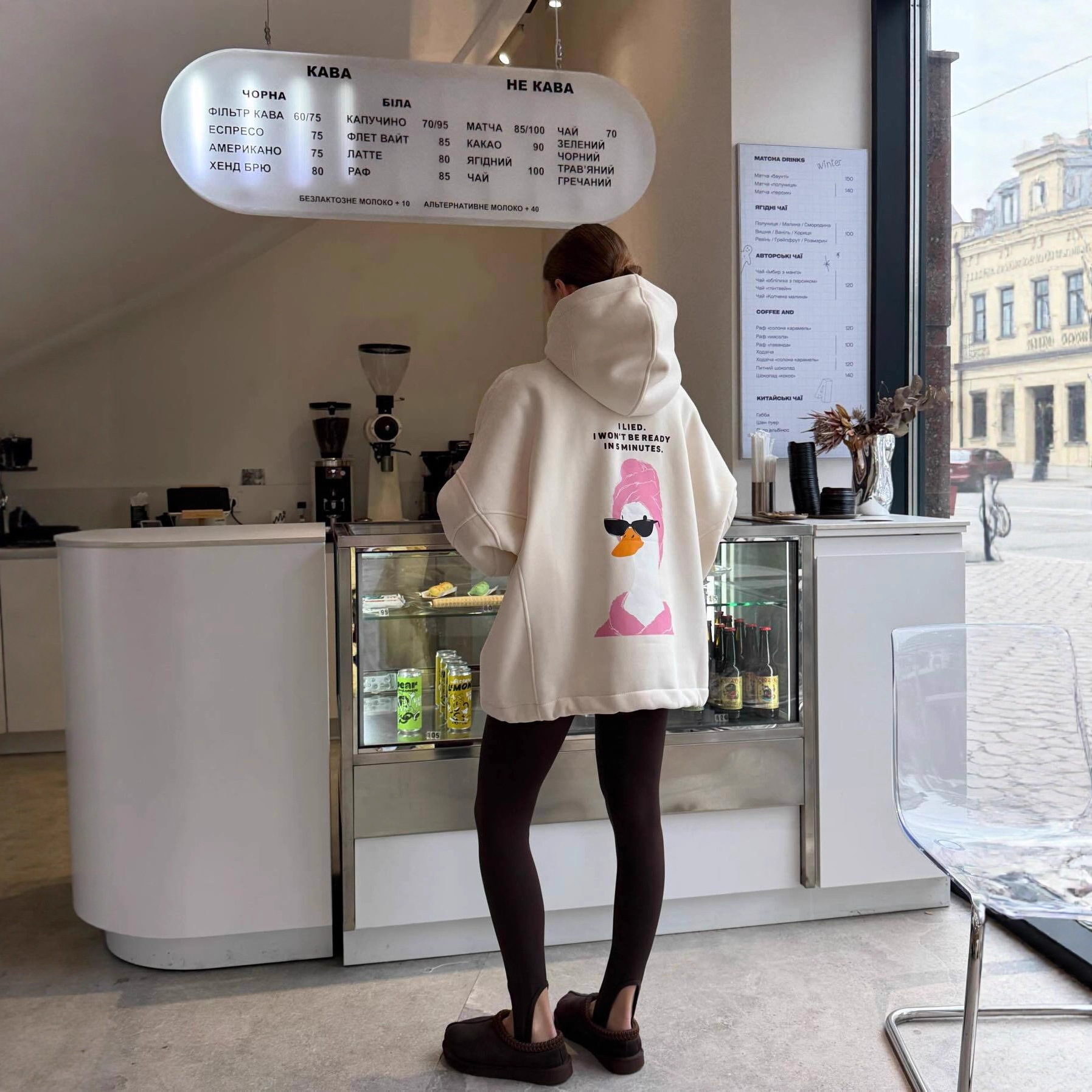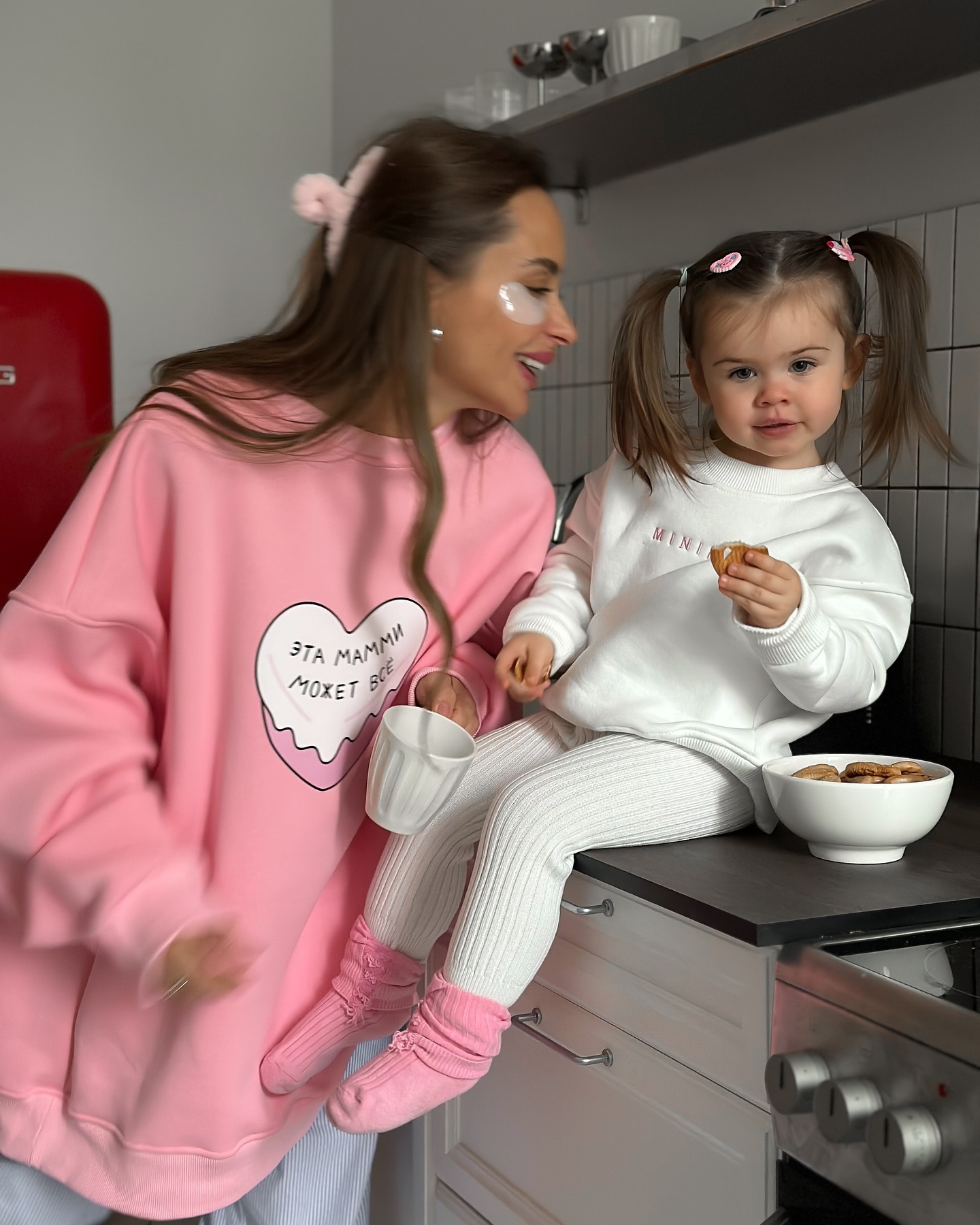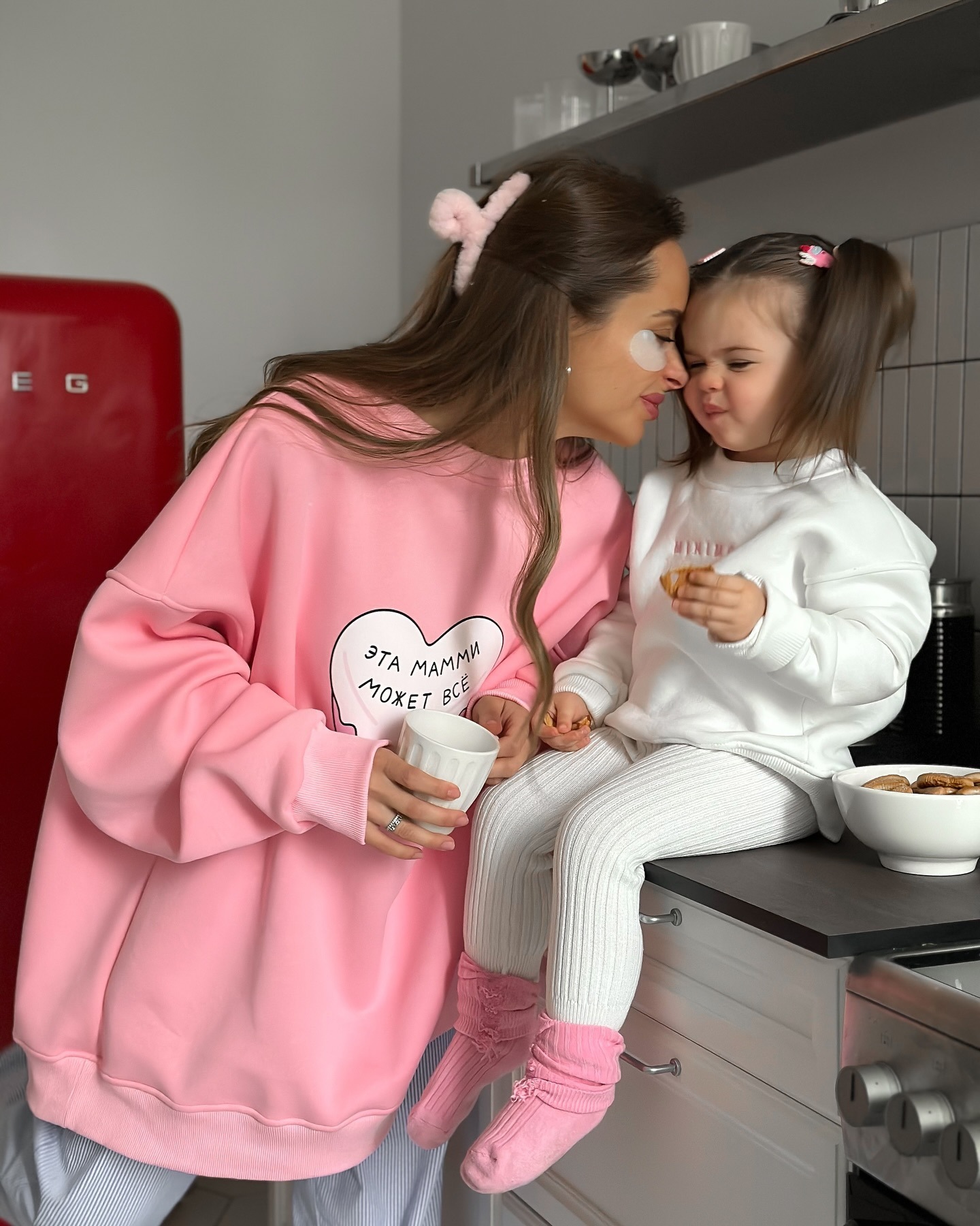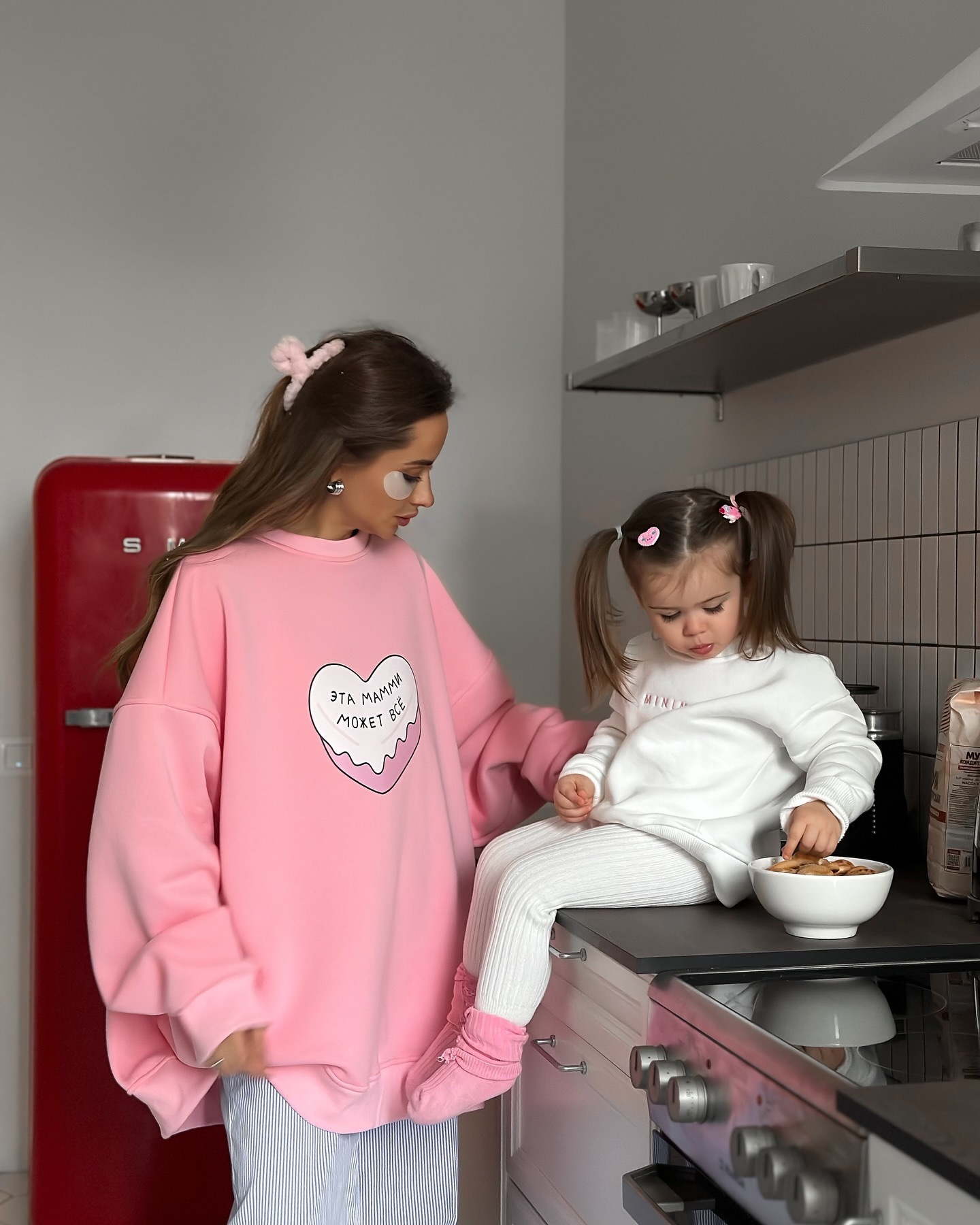 名称:多巴胺粉色爱心印花圆领套头卫衣女潮牌秋冬加绒保暖Oversize上衣