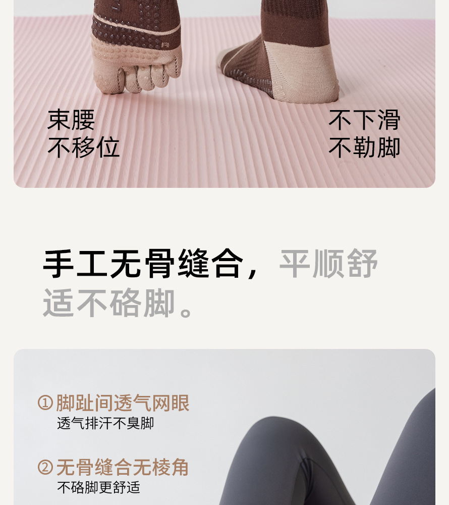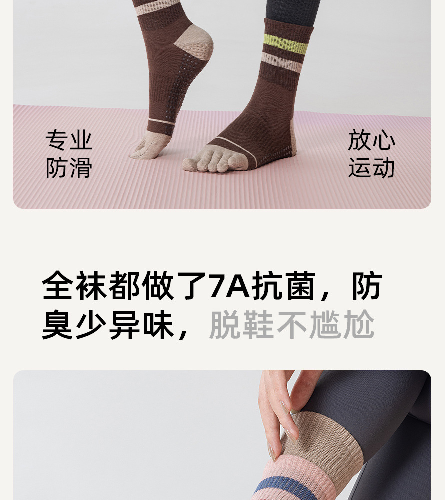 瑜伽袜子女五指袜中筒袜室内普拉提健身运动专业防滑分趾无骨长袜