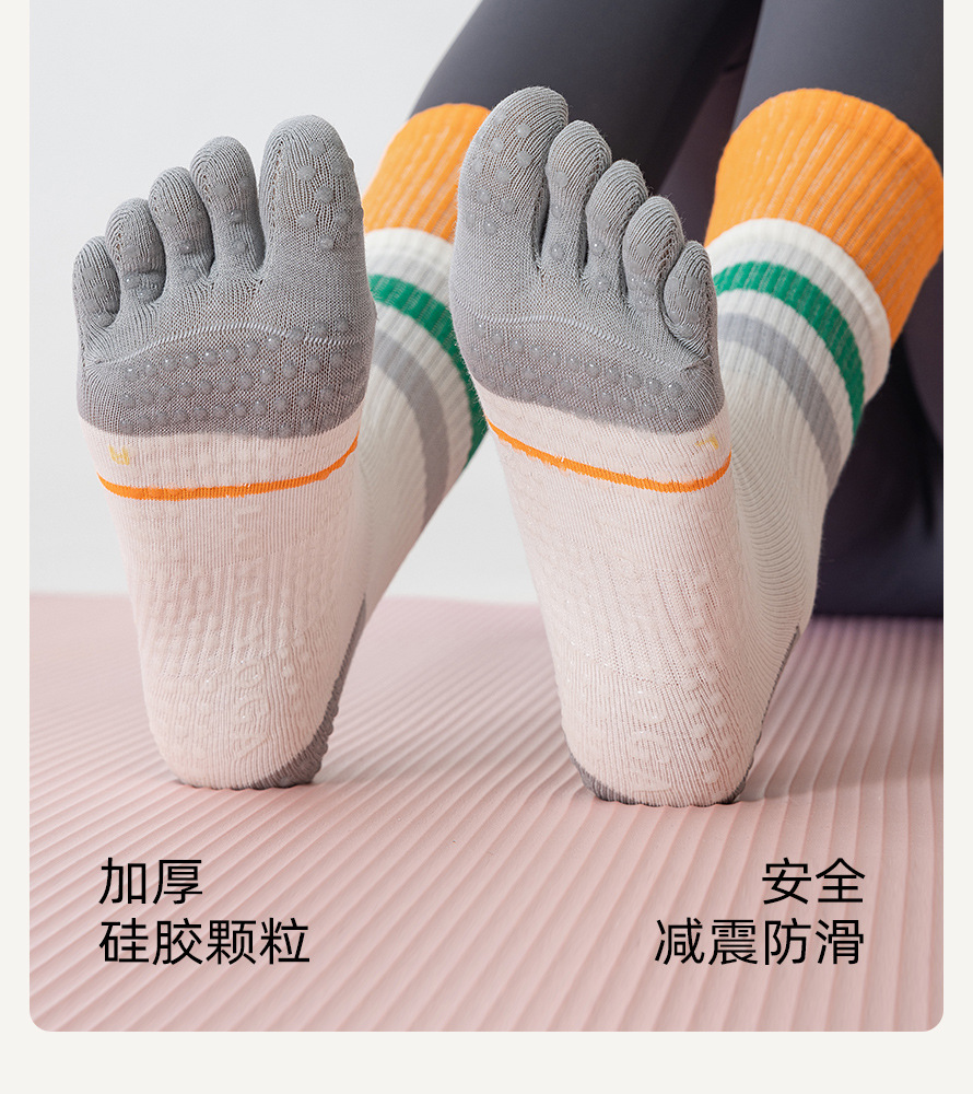 ヨガソックス春と夏のミッドチューブ5本指滑り止めプロフェッショナル女性屋内スポーツ滑り止め5本指ソックスフィットネスダンス滑り止め