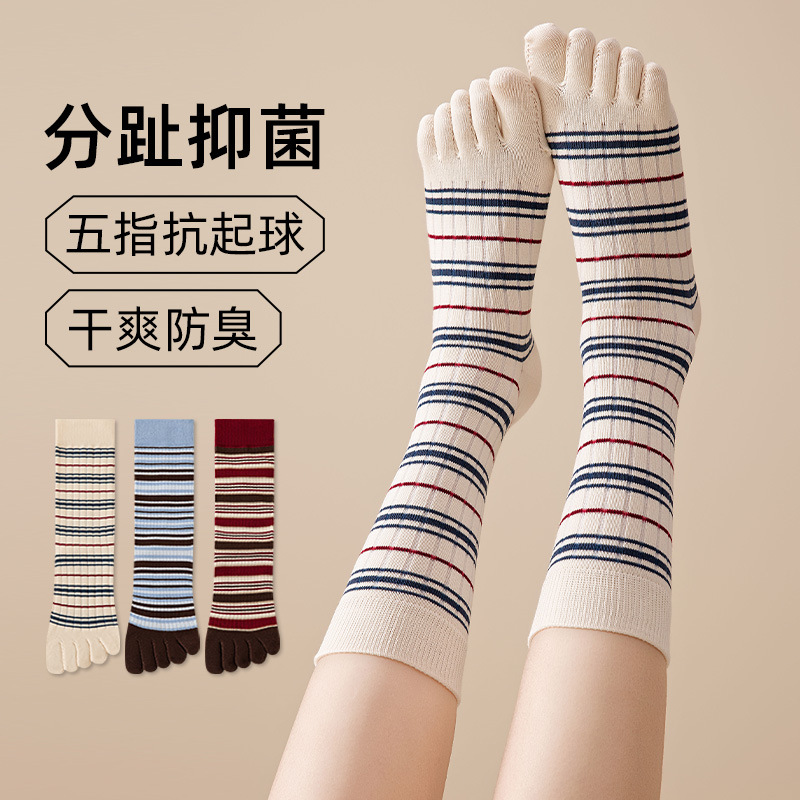 五指袜子女春夏季透气吸汗26年新款ins风条纹显瘦无骨堆堆分趾袜