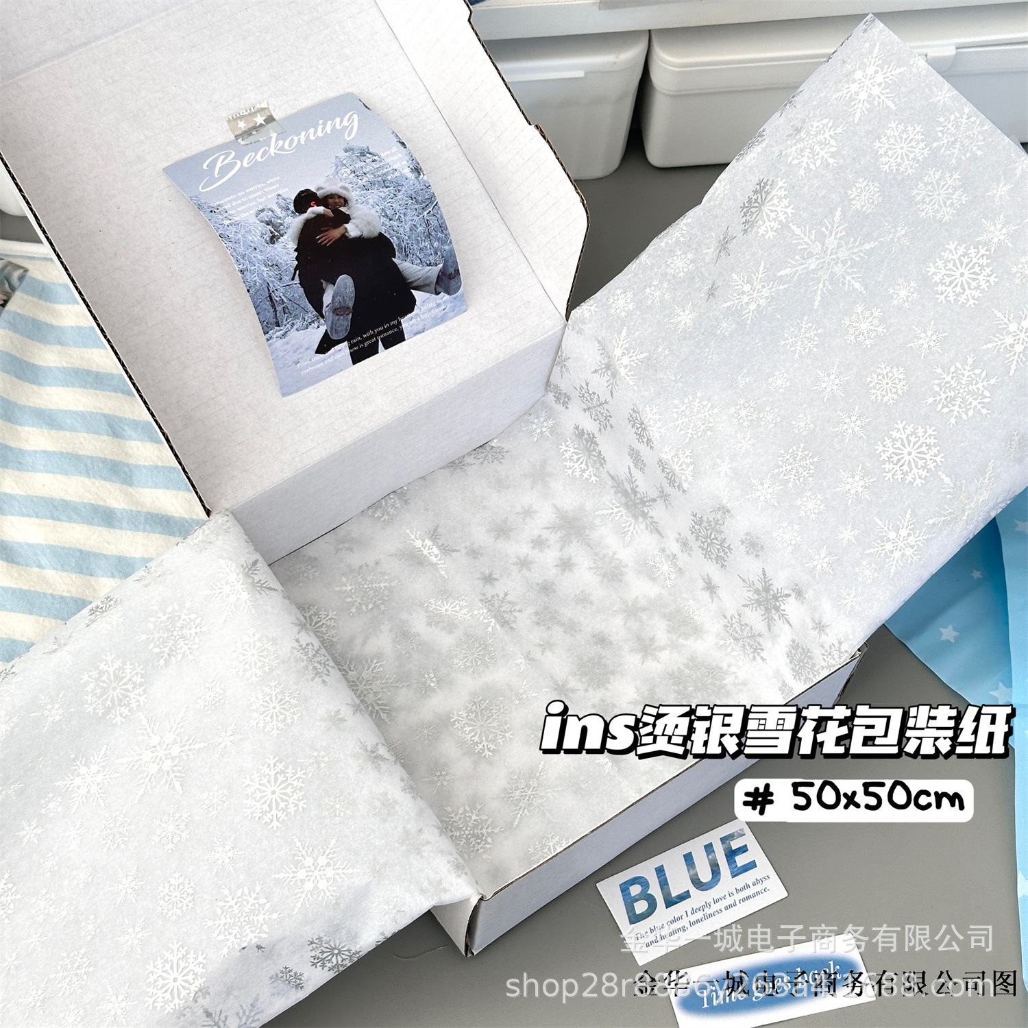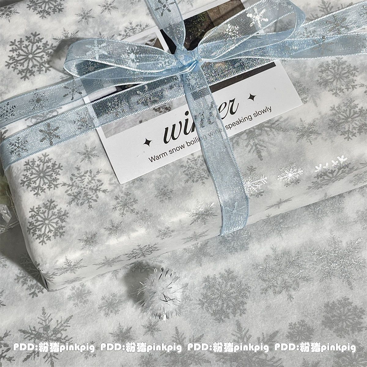 高颜值冬日氛围感烫银雪花包装纸礼物diy打包材料雪梨纸包装大张