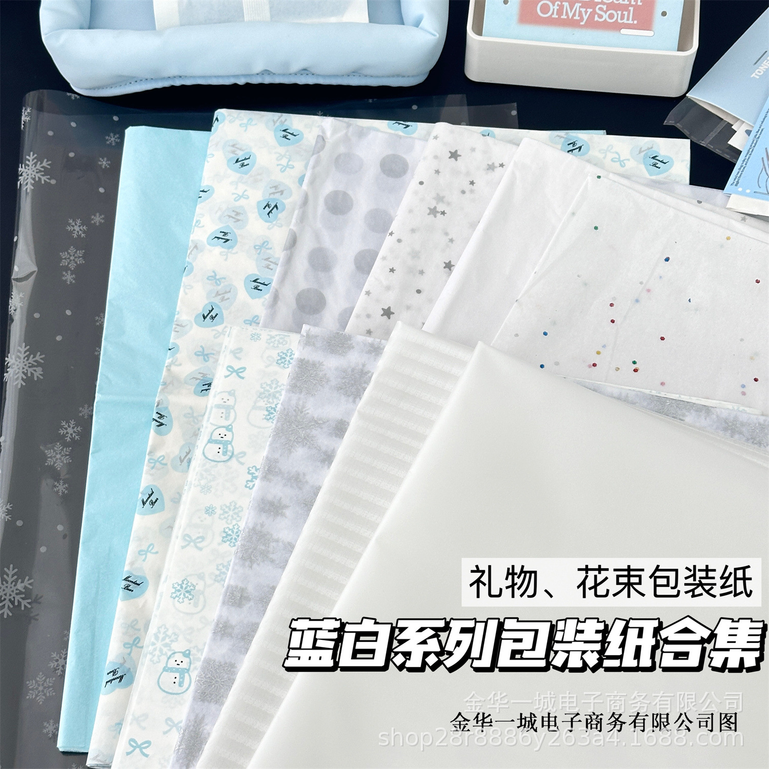 高颜值蓝白冬日系列雪梨纸大合集DIY大张平价礼物花束打包包装纸