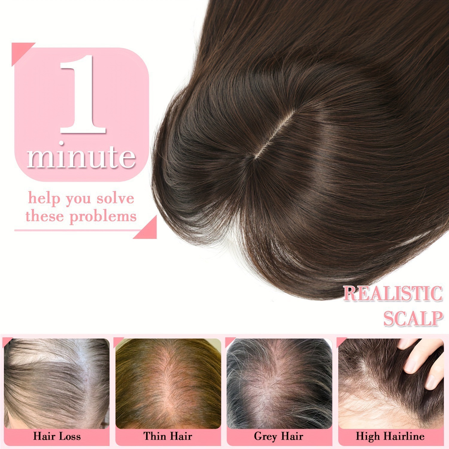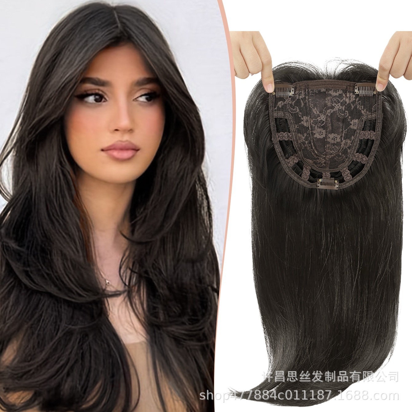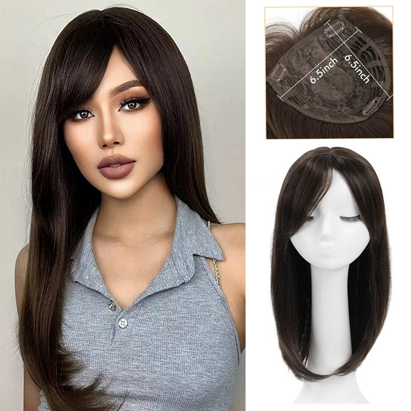 跨境欧美假发女 化纤发块八字刘海长直发头顶补发块遮白发隐形wig
