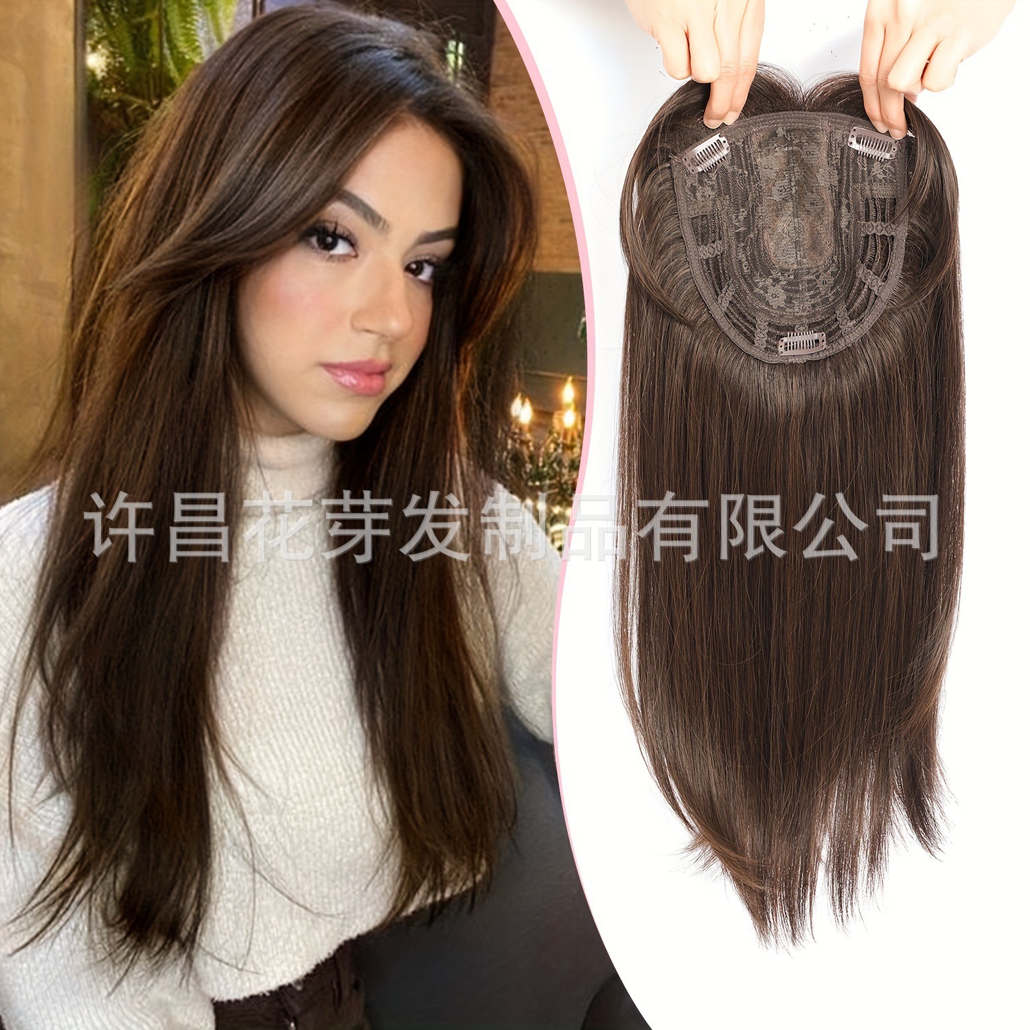 假发女八字刘海补发块头顶补发增发量女士夹式中分女长直发假发片