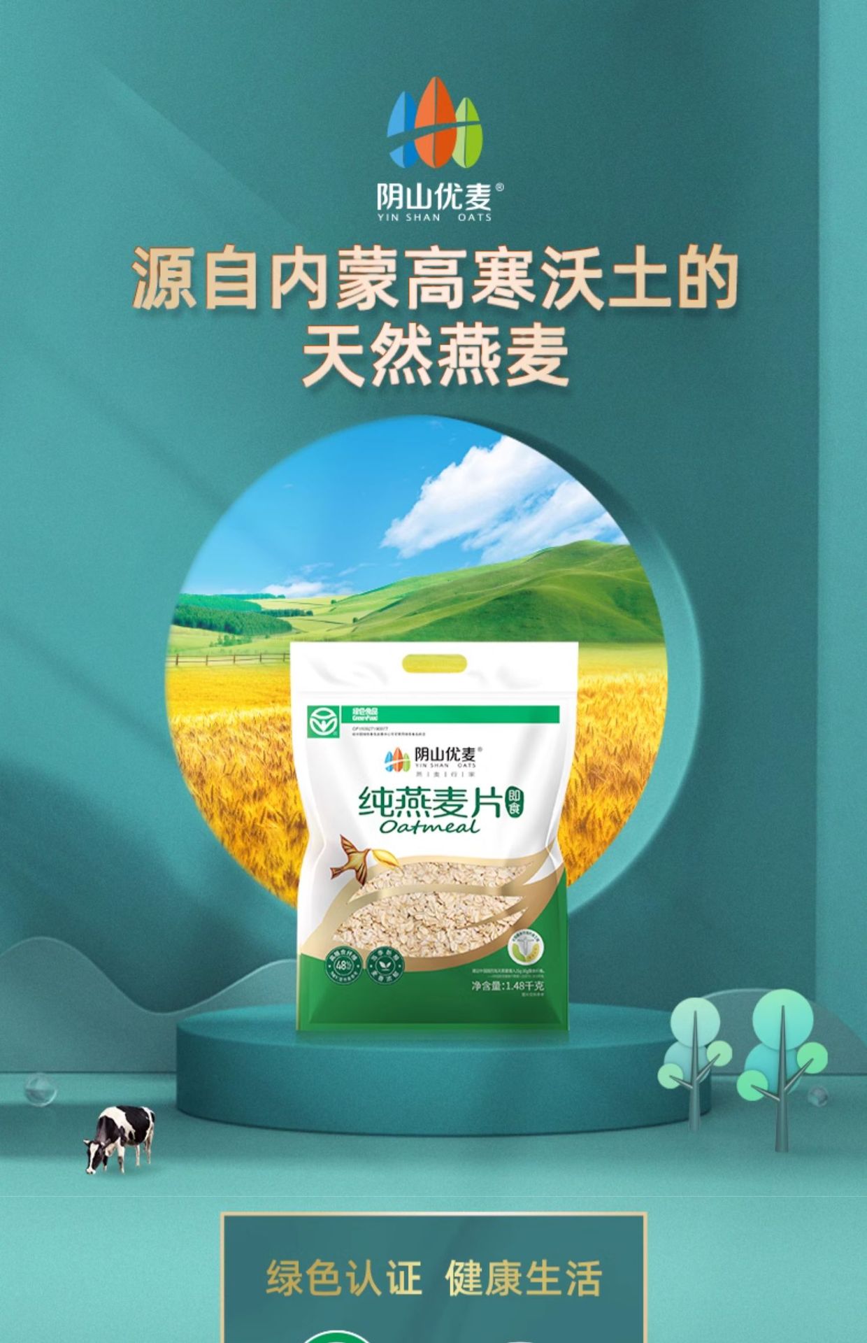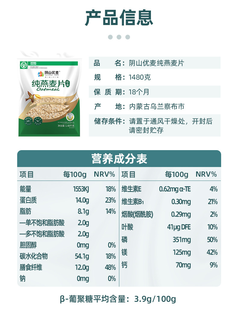 陰山優麦有機純オートミール無添加ショ糖内モンゴル高繊維高タンパク抽出インスタント食品代理食