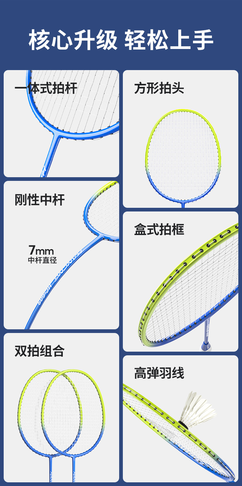 御战羽毛球拍铝合金套装儿童学生双拍耐打球拍儿童学生初学者