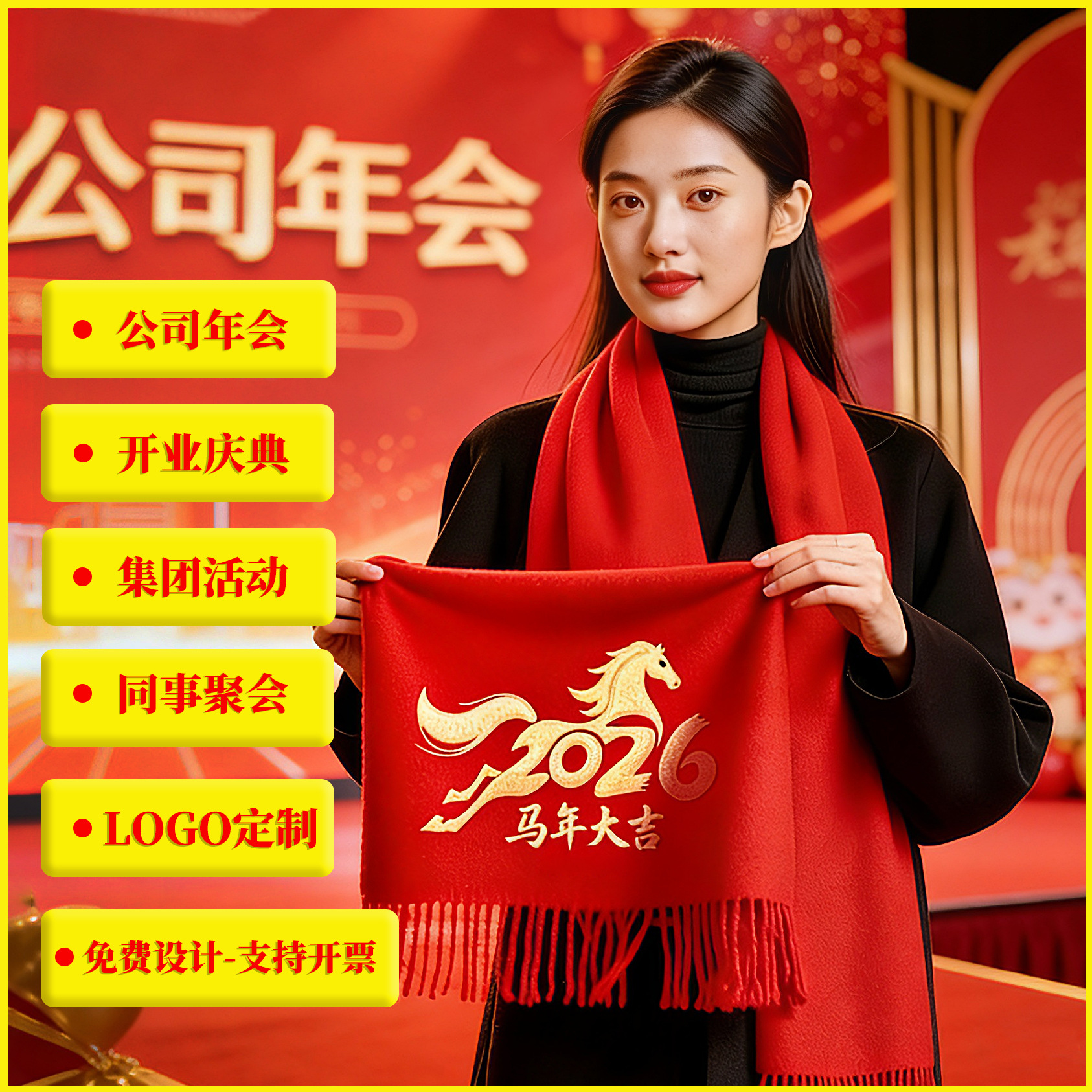 中国の赤いマフラーのカスタムロゴ刺繍年会同窓会イベントプレゼントの赤いマフラーのカスタム印刷
