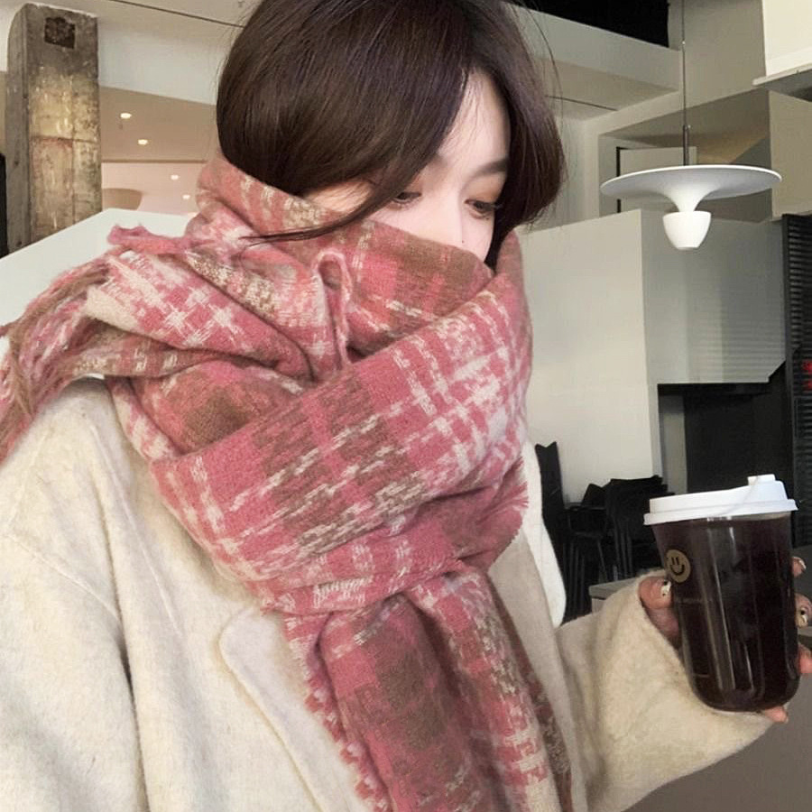 雰囲気感のある格子マフラーの女性は冬の2024の新型韓国系百合学生jkかわいいカップルが首を大きくして秋を囲んでいる