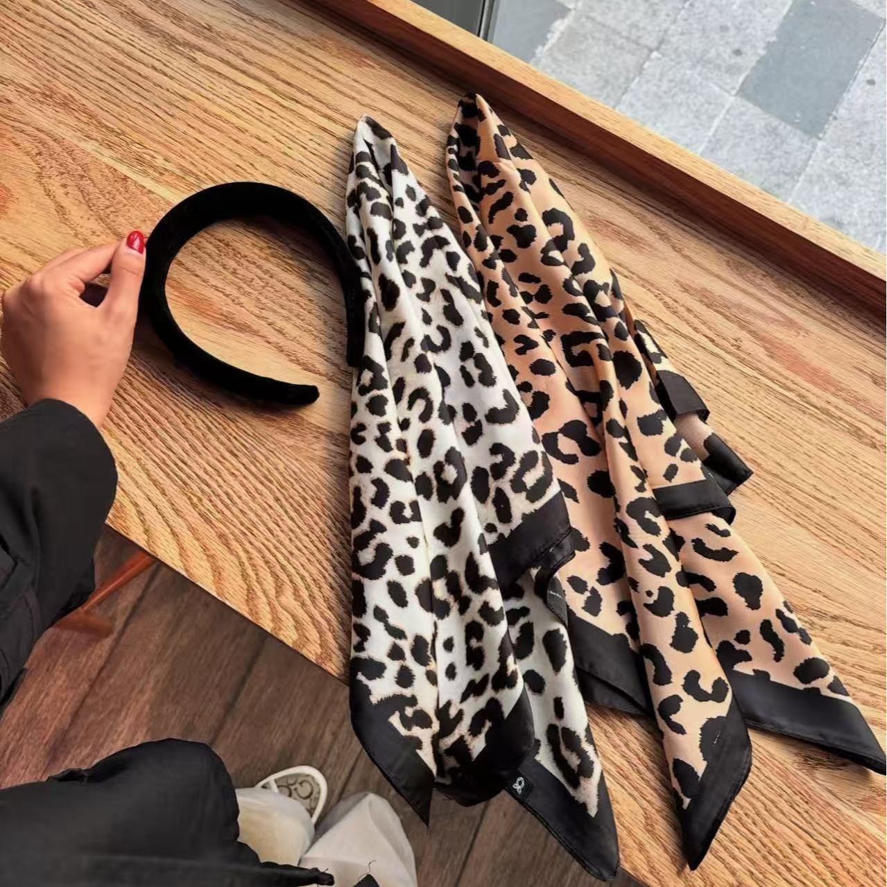 欧美流行豹纹印花丝巾女士休闲包头巾中东热卖70cm小方巾系脖领巾