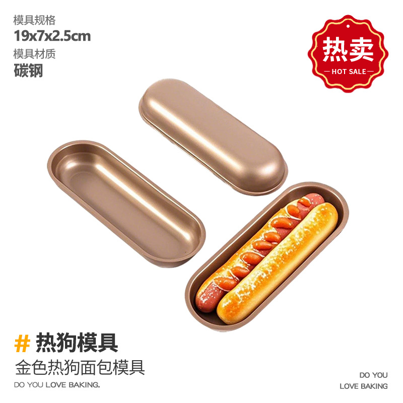 炭素鋼の金色の7インチのホットドッグの鋳型の長いトーストの鋳型のパンの鋳型のミニのハンバーガーの鋳型はくっつかないで焙煎する鋳型
