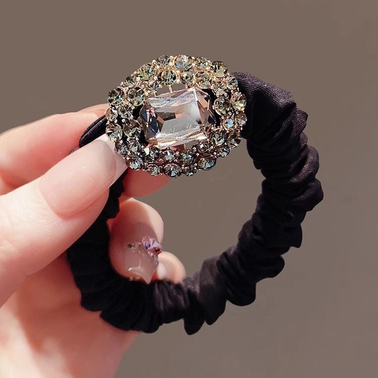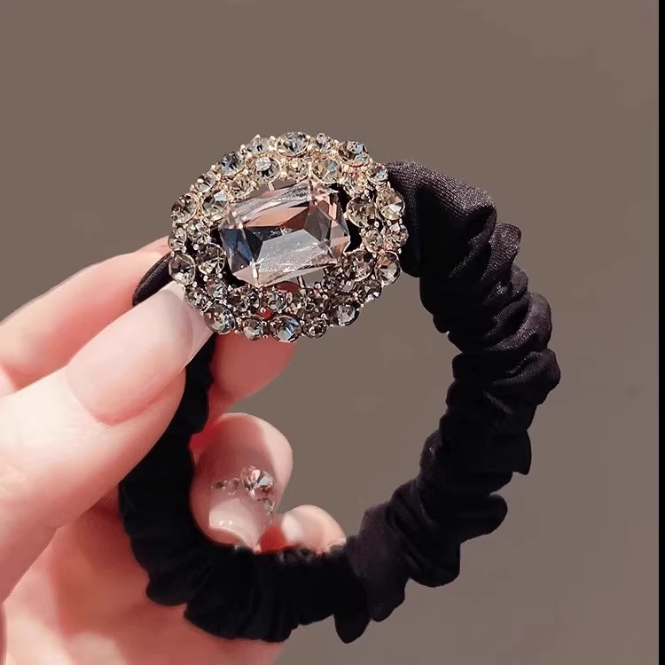 ラインストーン大腸シュシュ高級感髪ひも少女ファッション高弾力耐久性髪ひも皮カバー馬尾団子頭飾り