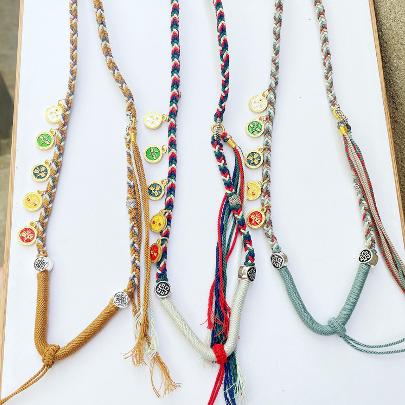 チベット綿ロープ手織りロープ五方富の神ロープタンカペンダントストラップレトロエスニックスタイル仏お守りネックレスロープ